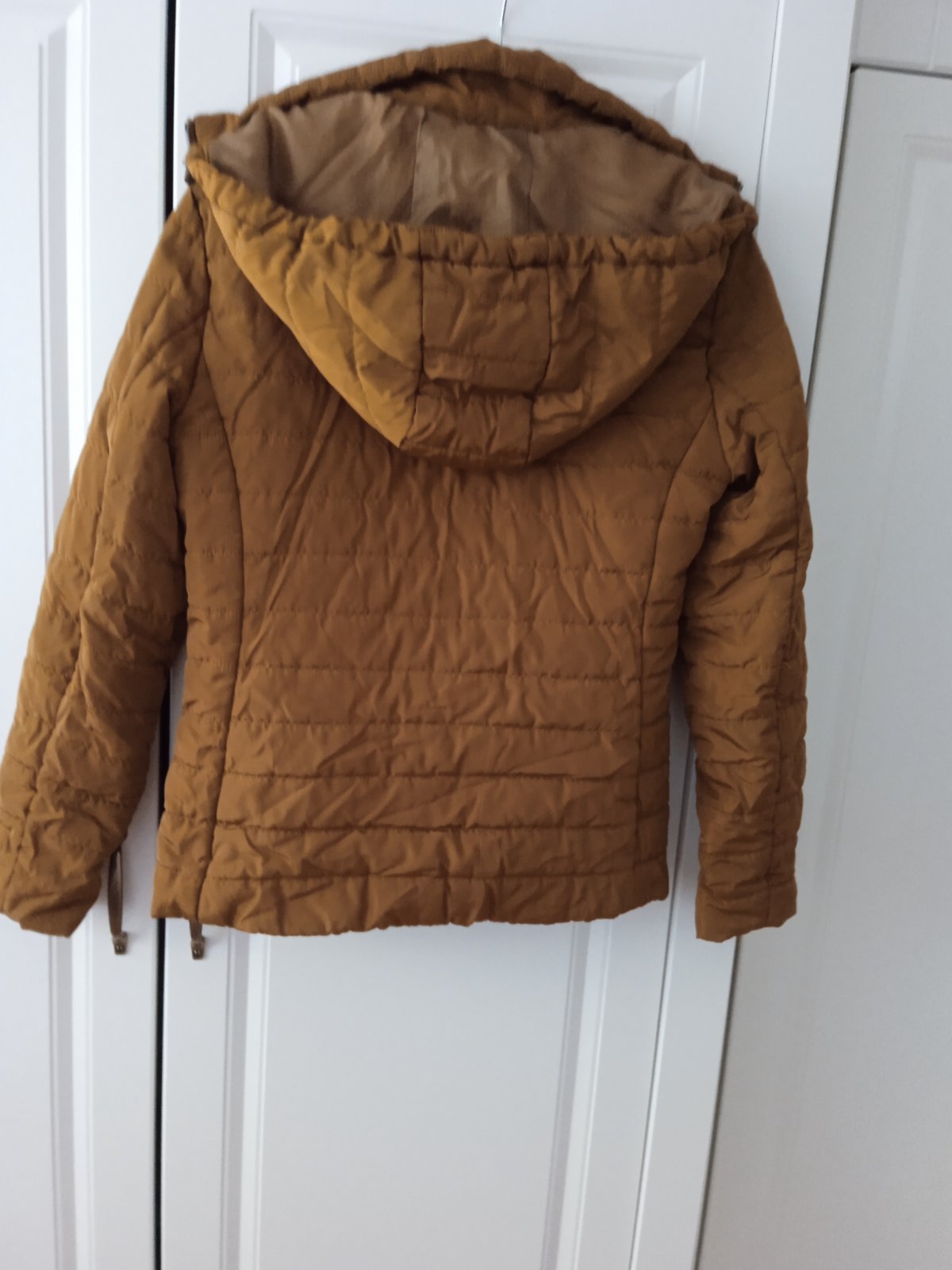 Bunda na prechodné obdobie. Farba je taká hrdzavá. Kapucňa na pevno. Žiadne známky nosenia, málo nosená..