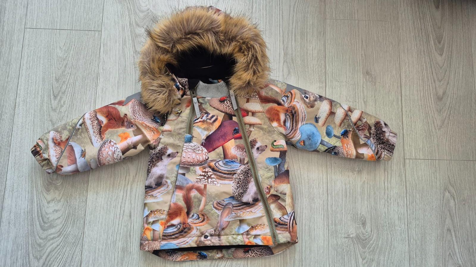 Bunda na dvor,vhodná pre baculatejšieho chlapca,chýba kapucňa.Do miernej zimy,mierne vatovaná.Dĺžka 42cm,šírka 2x40cm,rukáv od krku 38cm