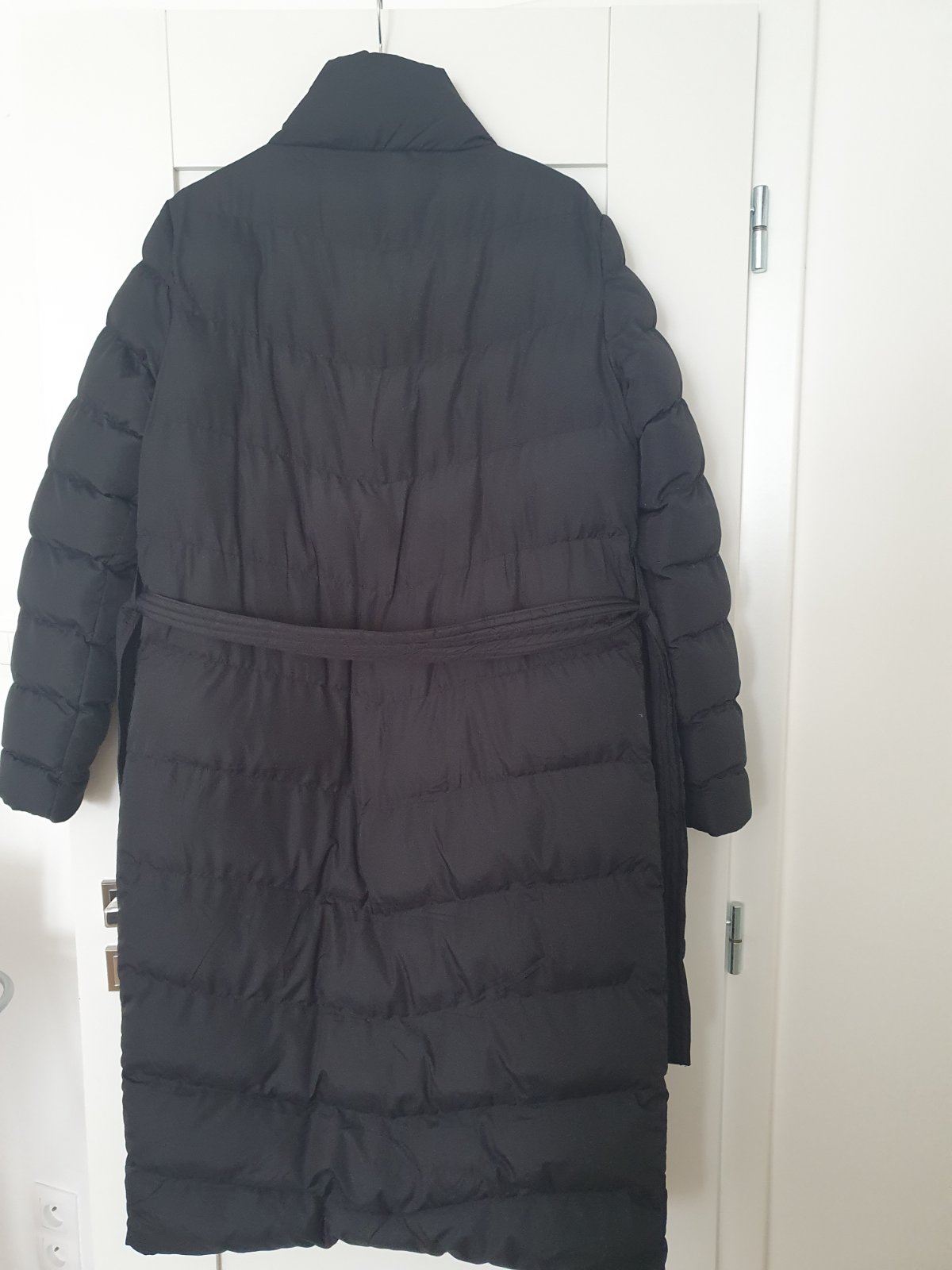Posuvam 2x oblečený dlhy prešivaný kabát s opaskom. Bez kapucne, na zips a patenty. Zahreje.