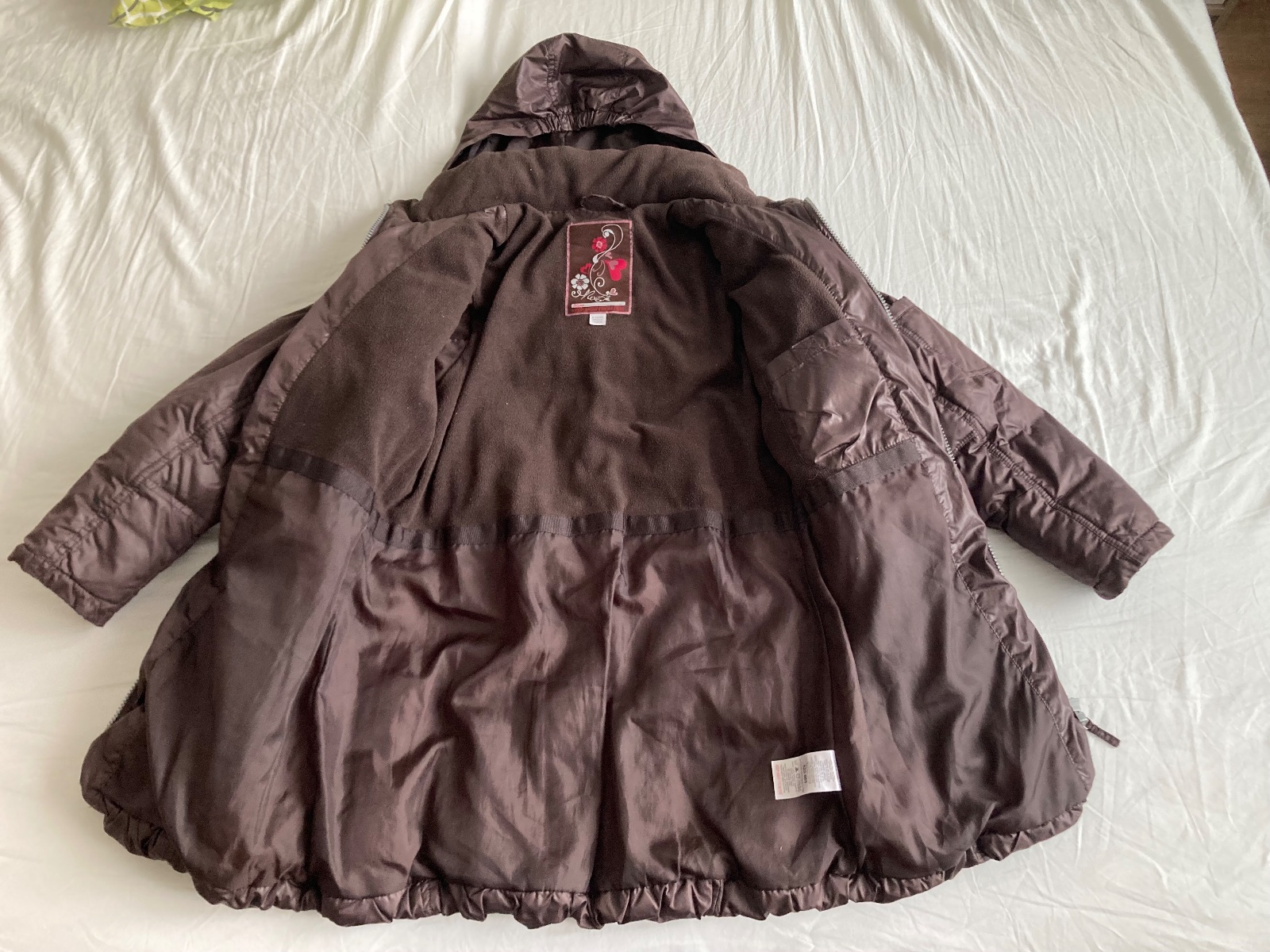 Bunda v top stave, s prírodnou kozušinkou. Velkostne sedi 9-11 rokov. Vnútro zateplené kožušinkou, strih predlženy ( parka) , v pase sa sťshuje, farba čokoladovś hnedá. Bunda je ľahučká, veľmi tepl...