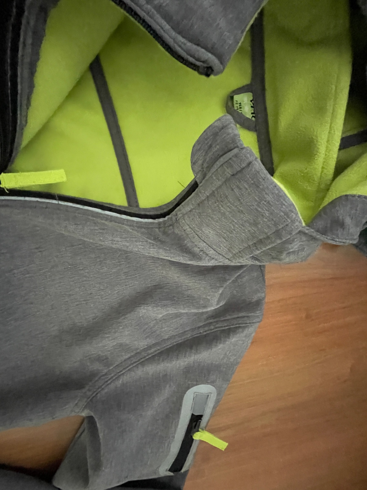 Nepremokavá bunda s reflexnými prvkami, podšitá fleesom, kapucňu je možné odzipsovať, málo nosená, reflexné prvky kde-tu máličko ošúchané, veľmi dobrý stav, veľkosť 158/164, zn. Y.F.K