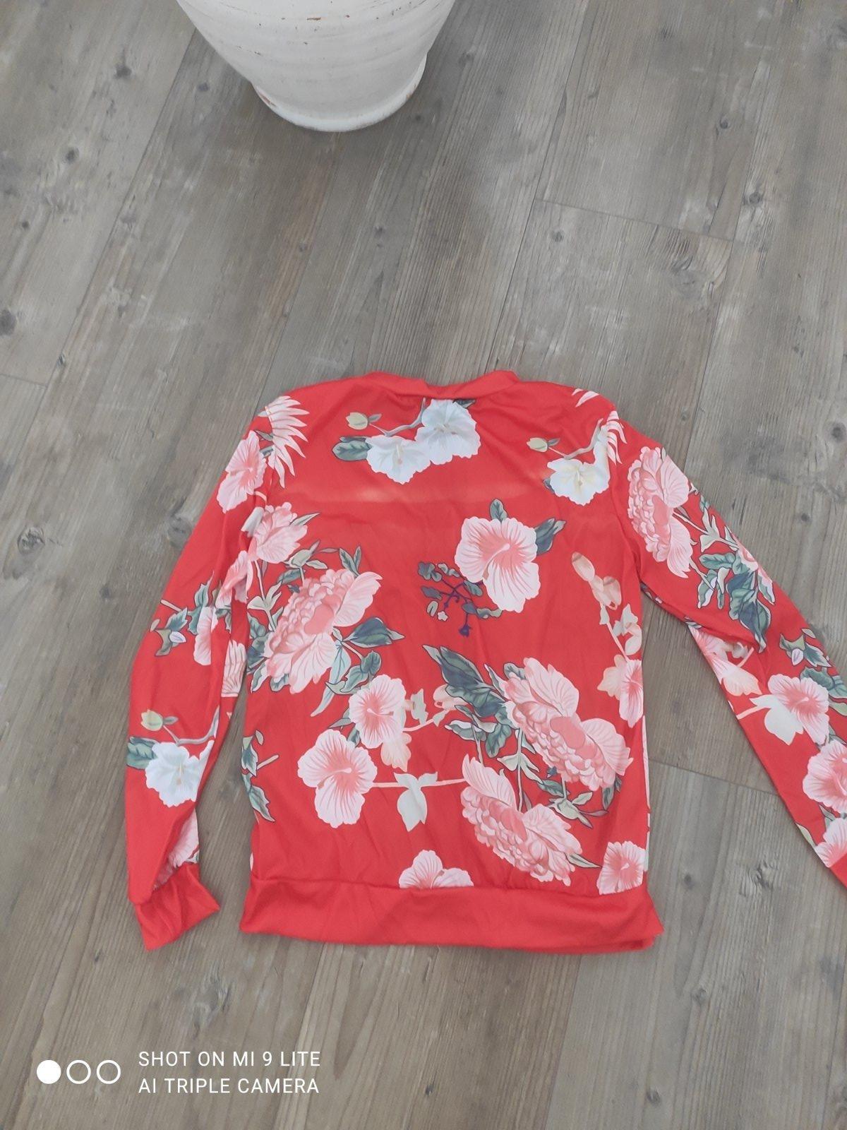 krasna tenucna jarna bundicka s kvetinovou potlacou, bundicka je do pasa , velkost S a M