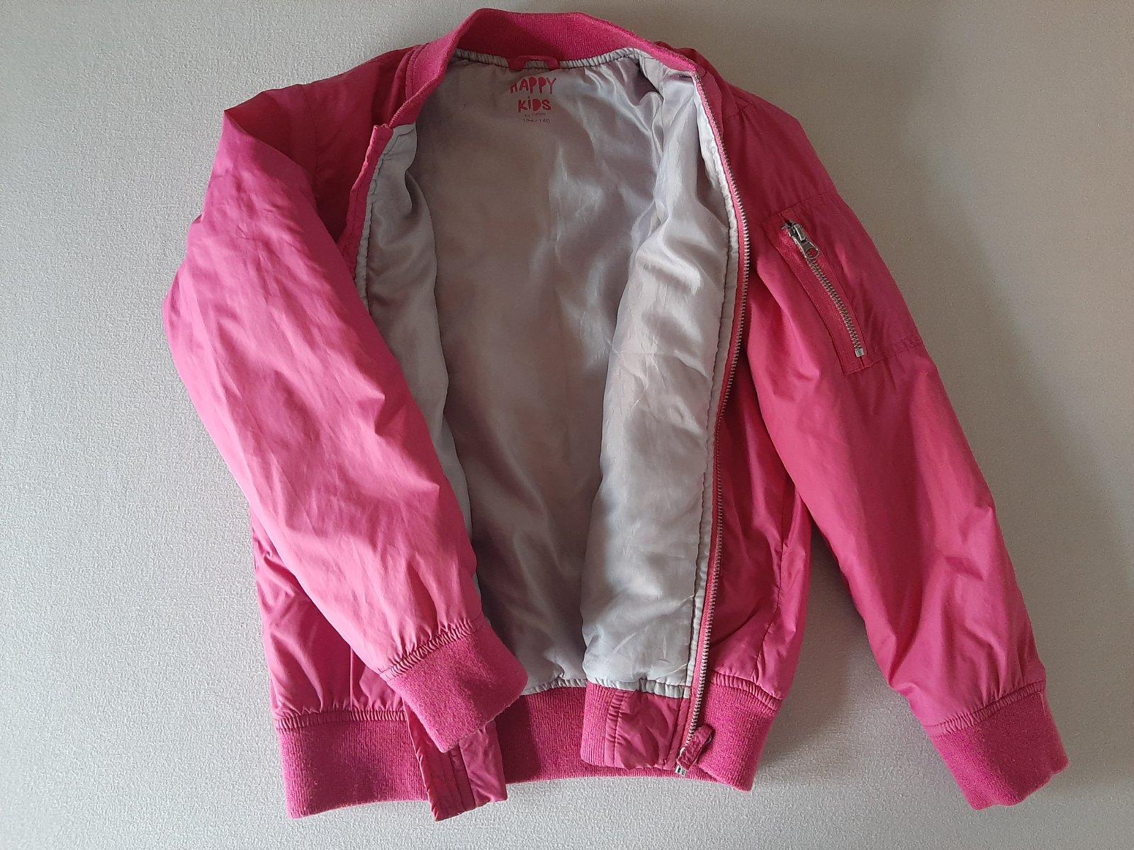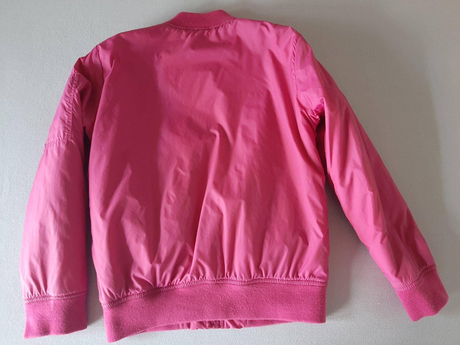 Dievčenská bomber bunda krásnej sýto ružovej farby značky Tchibo vo veľkosti 134/140. Bunda sa zapína na zips má patenty a vpredu vrecká. Na golieri malý stojačik a na jednom rukáve moderné vrecko so zipsom. Parádny stav.