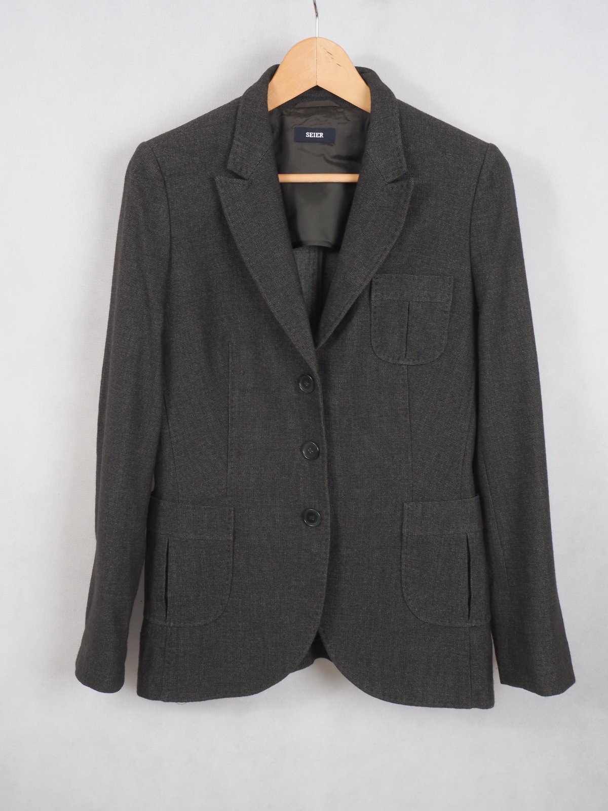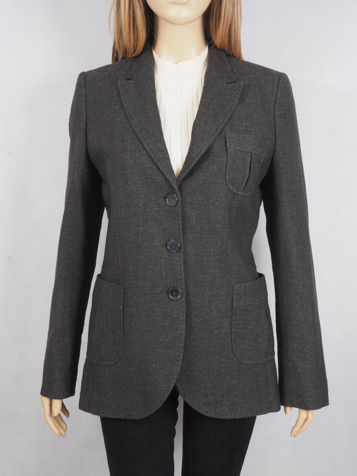 Luxusné dámske sako, hnedej farby, zapínanie na gombíky, materiál 71% vlna, 29% bavlna, super stav.