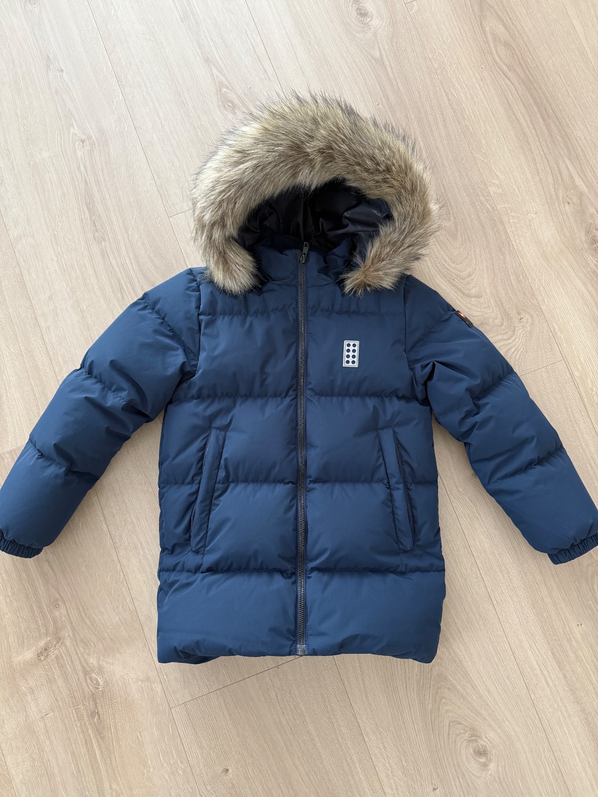 Bunda lego v top stave, akurát prívesok na bežci je trochu poškodený, viď foto. Veľkosť 7-8rokov. Bunda má reflexné prvky vpredu aj vzadu, vrecká na zips.V