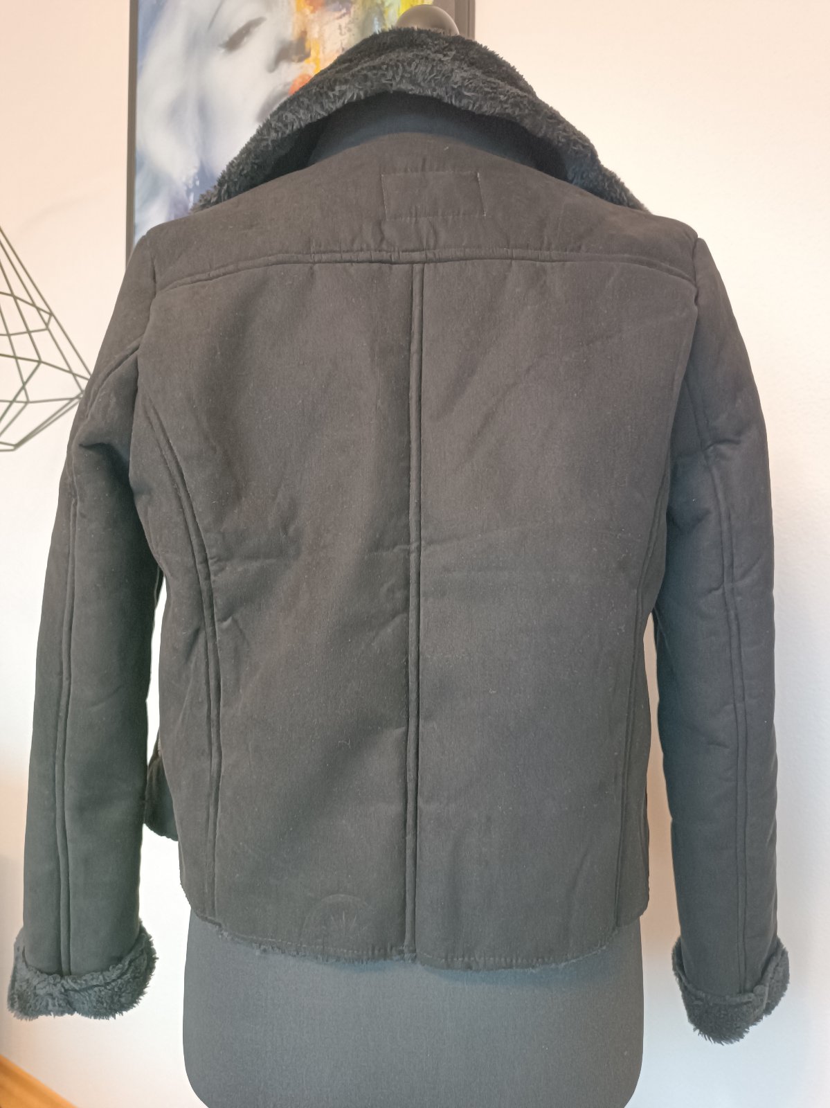 Oblečená 1 x ,je mi veľká, veľmi pekná, kvalitná, štýlová zimna bunda super čiernej farbe , písaná veľkosť 40 ale v tomto prípade sedí na 38, M, menšie L