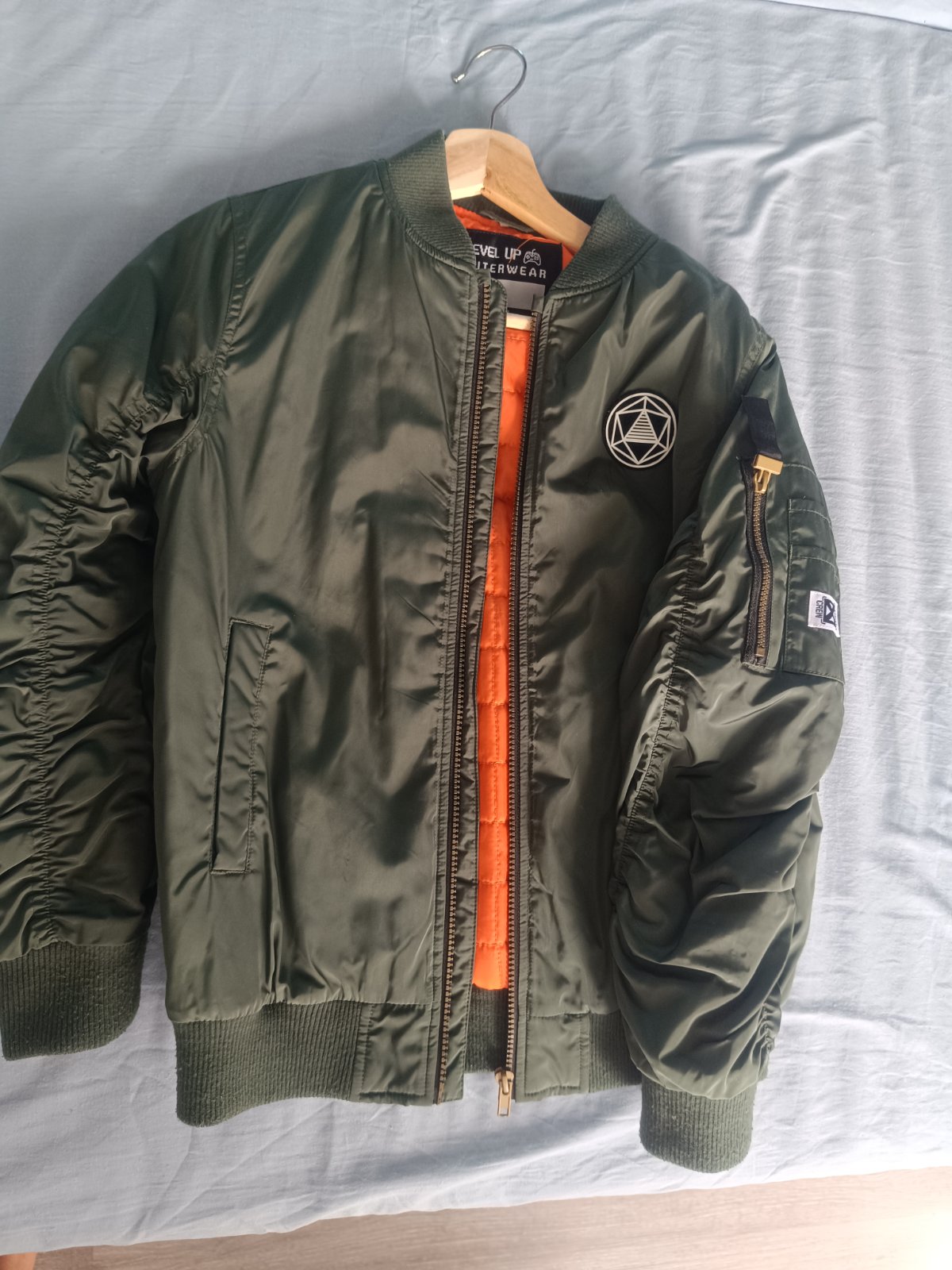 Bunda je v dobrom stave, nosená na striedačku s inou. Na jednom rukáve je malá časť, ktorá je trošku ošúchaná. Značka Jack and Jones.