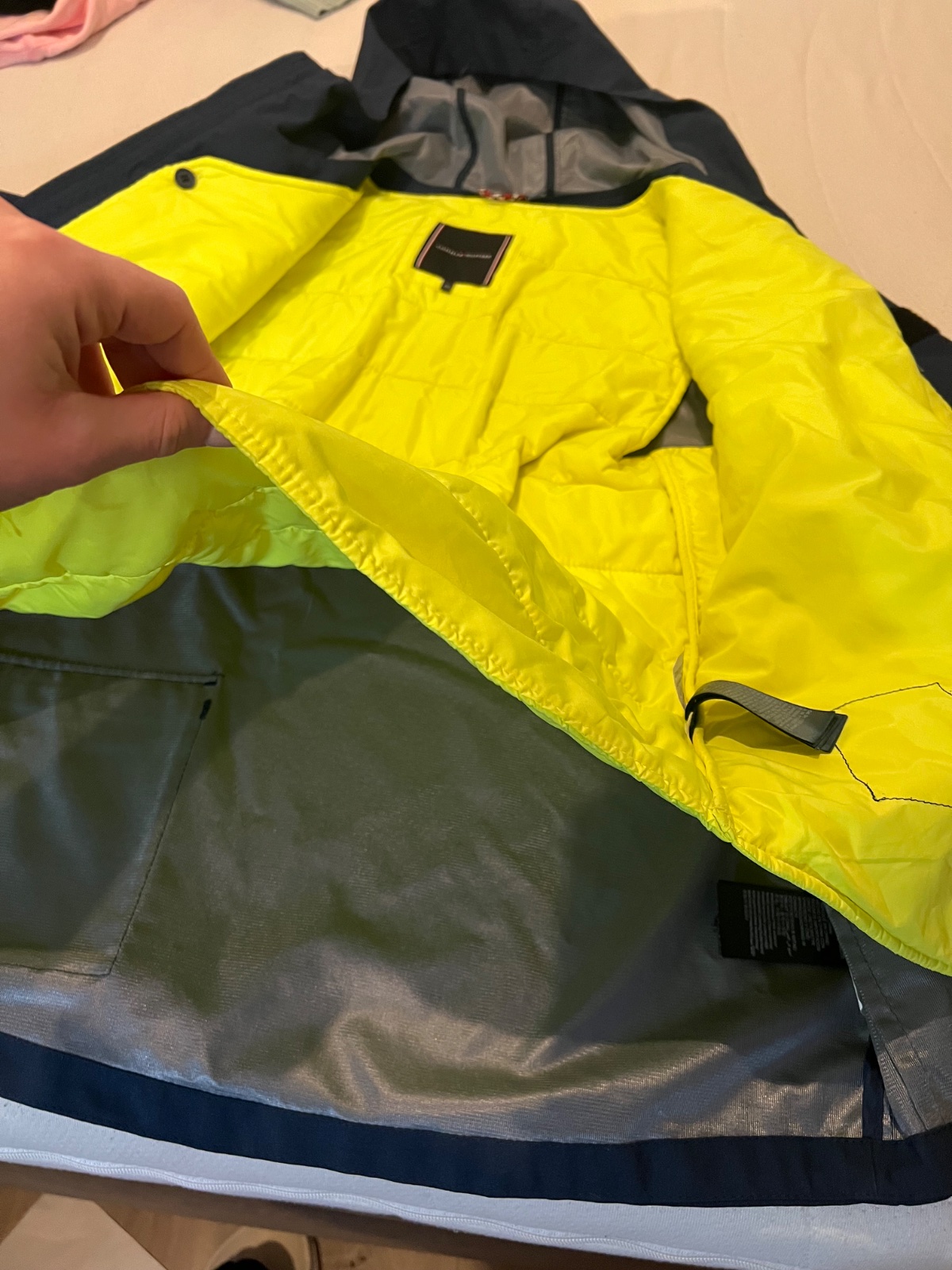 funkčná bunda v peknom stave bez poškodení, vodný stĺpec 10000, je skôr na taký prechod - je teplá, ale nie úplne na zimu. Rukáve na suchý zips, spodok sa dá utiahnuť, kapuca napevno. Veľkosť na 16...