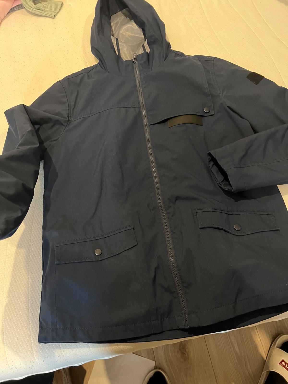 Predám bundu v top stave. Bola raz oblečená, už je synovi krátka. Krásna modra farba. Veľkosť písaná 176/182. Riaďte sa rozmermi, pokojne aj pánske S
