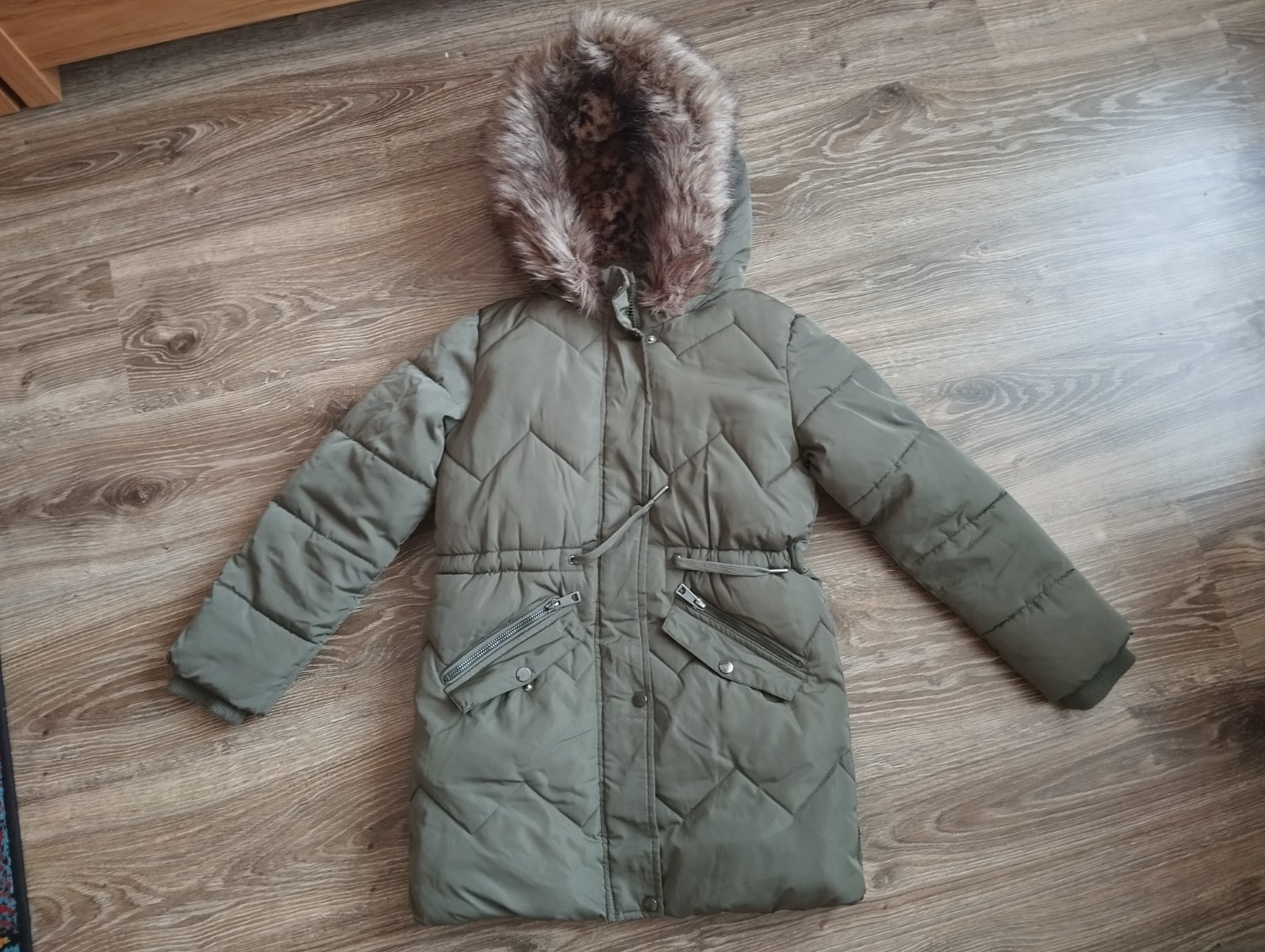 Dĺžka 65cm, šírka cez prsia 2x 43cm, rukáv od krku 59cm . Vo veľmi peknom stave akurát len gombíky sú trochu vyšúchané viď.foto .