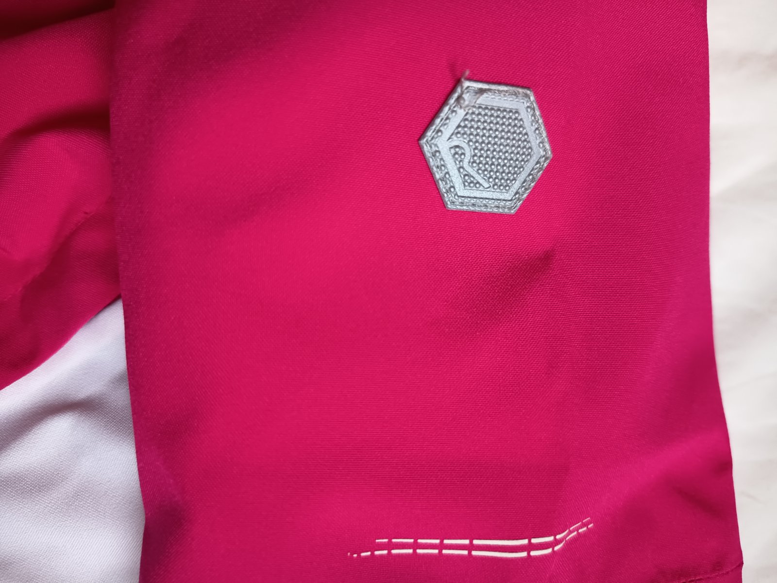 Zips s ochranou brady, reflexné prvky na rukávoch, prednej a zadnej strane. Kapucňa napevno so šiltom, predĺžený zadný diel, veľmi pekná malinová farba.