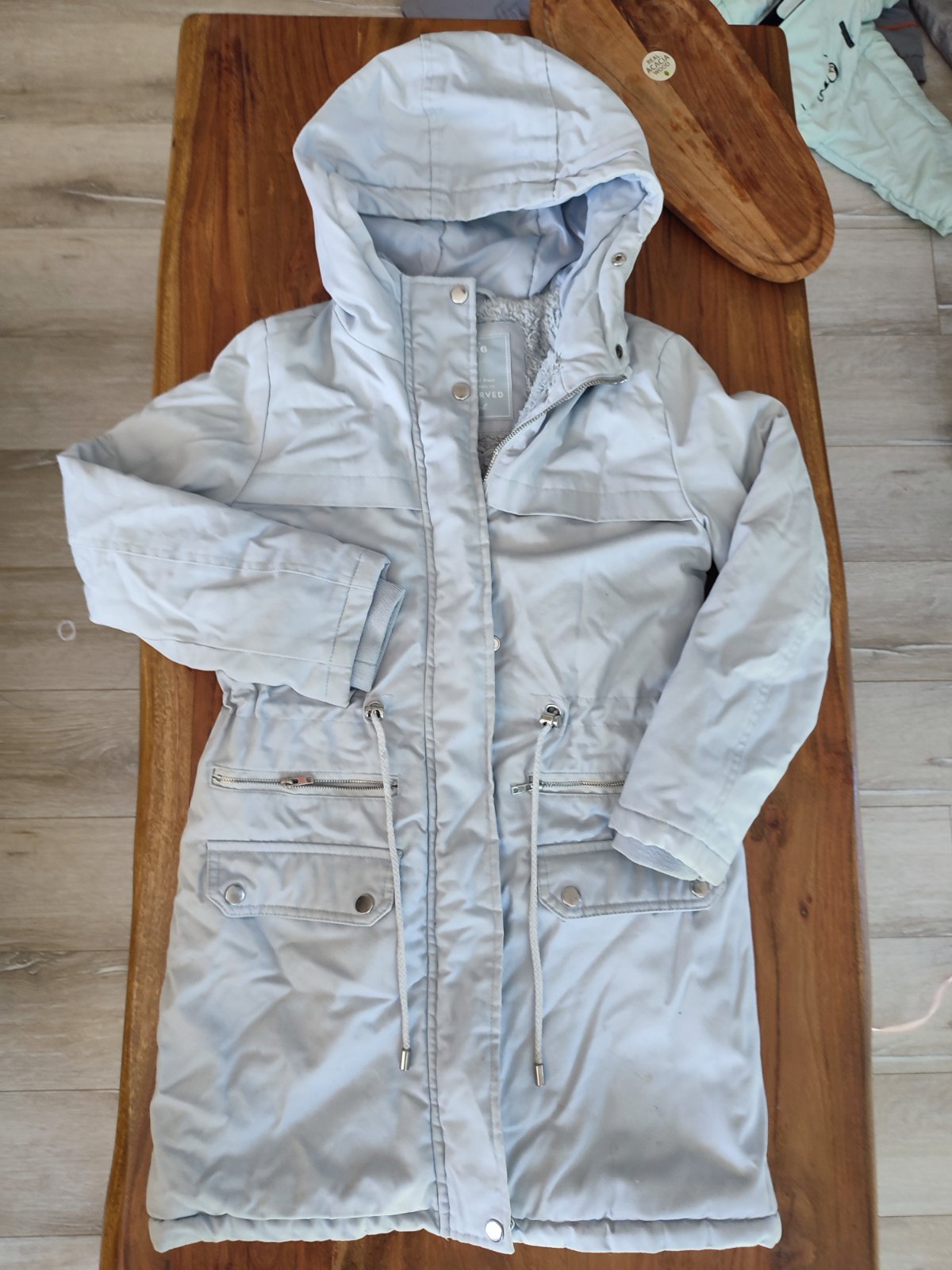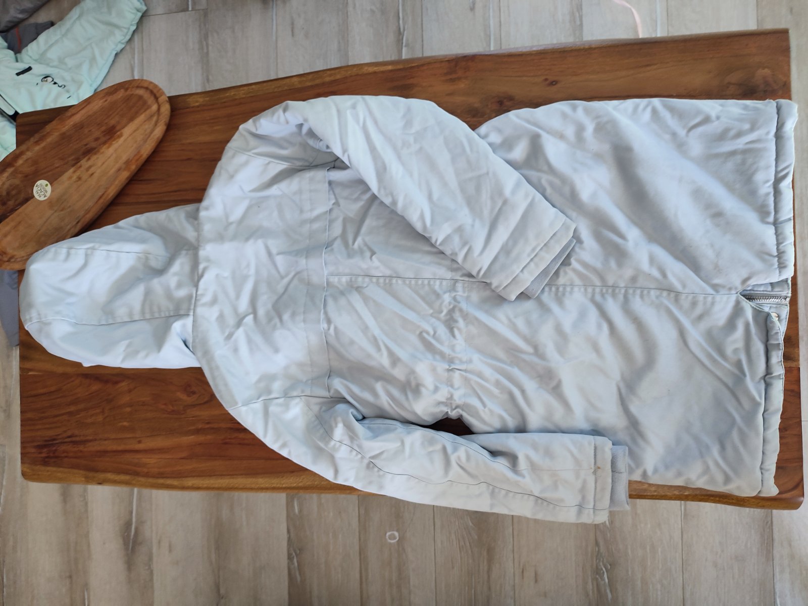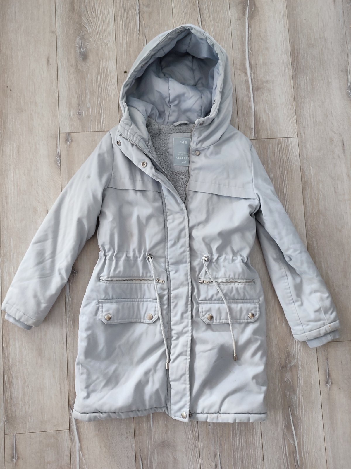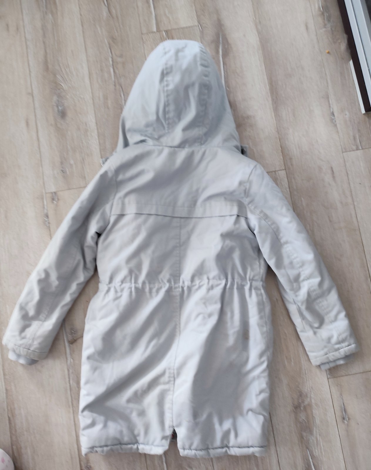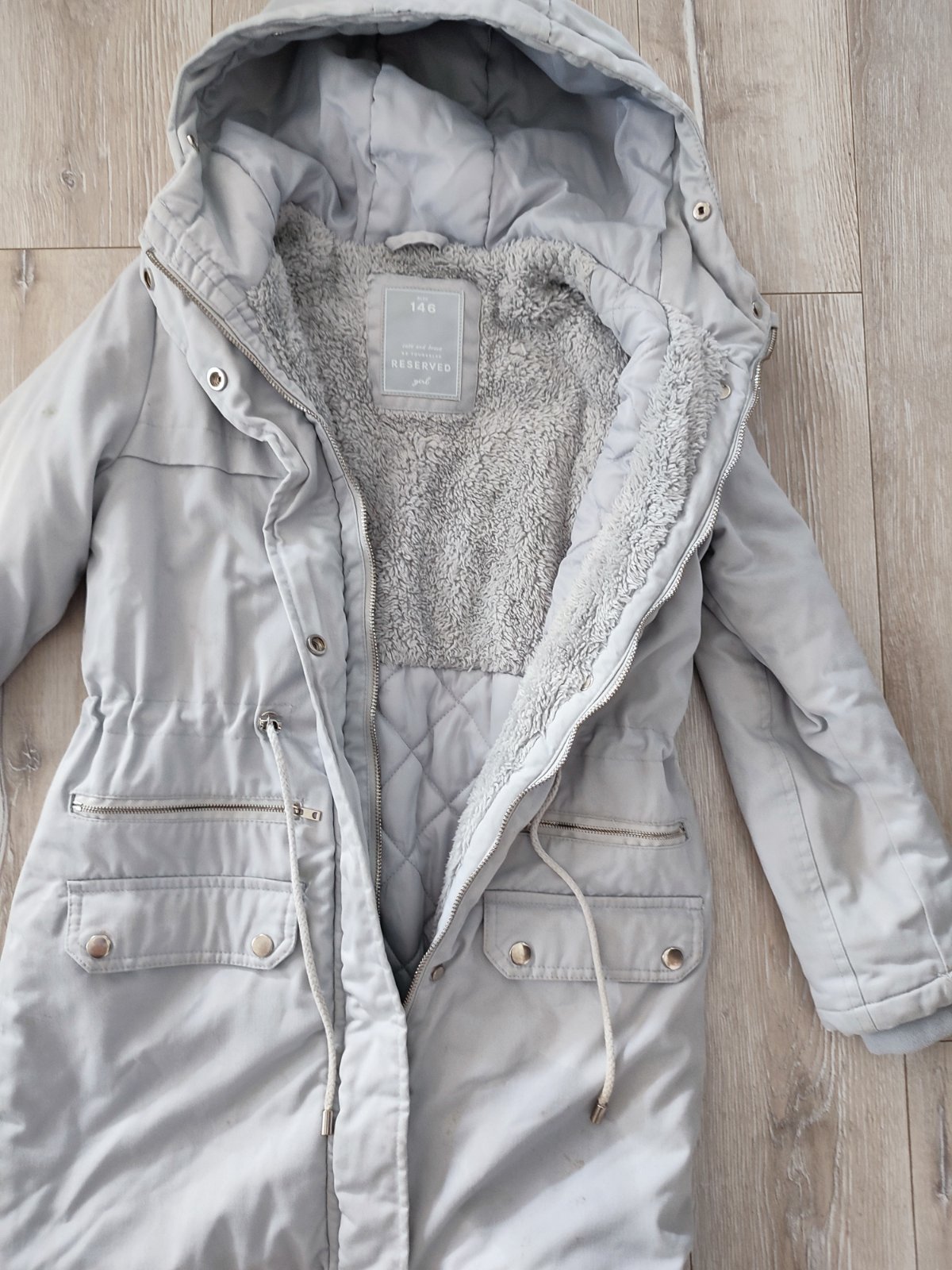Predám krásnu teplucku vetrovku s paradnymi praktickými detailami- 4 vrecká,možnosť prispôsobiť veľkosť pásu,zapínanie na zips aj gombicky,rukávy s gumičkou, kapucňa.