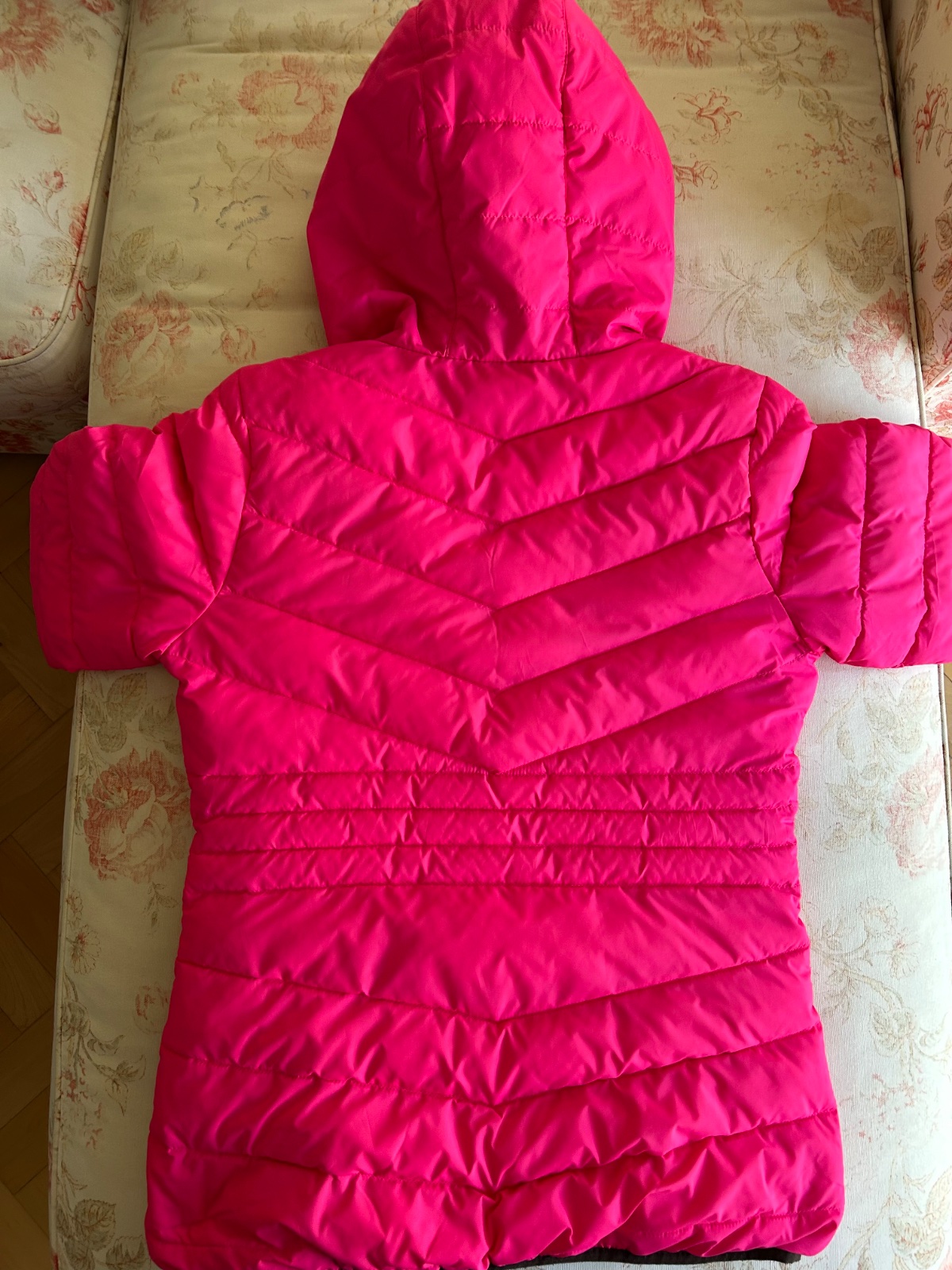 Dámska prechodná bunda kvalitnej značky, je nepremokavá, vetruvzdorná, dobre udržuje teplo takže môže byť aj na teplejšiu zimu, má krásnu výraznú ružovú farbu, podšívka je tmavohnedá. Bola používaná ale je zachovalá, nemá poškodenia. Má taký užší strih. Rozmery: šírka cez prsia 47cm, dĺžka 64cm a dĺžka rukáva od ramena je 65cm. Bunda stála 95€.