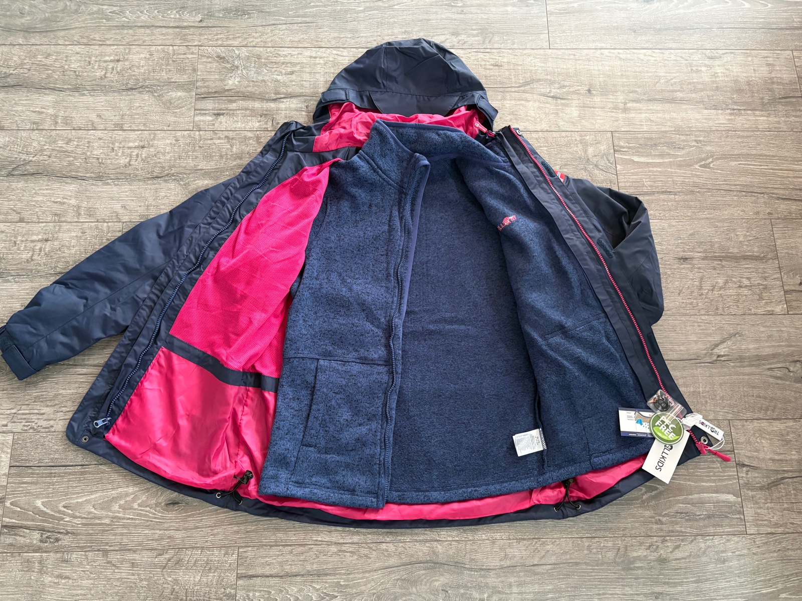 Nepremokavá, vetruodolná a priedušná funkčná bunda 3v1, ktorú je možné nosiť po celý rok: vonkajšia bunda s kapucňou spoľahlivo ochráni pred vetrom a počasím, v kombinácii s vnútornou strickfleece bundou sa optimálne ukladá telesné teplo. Obe bundy je možné nosiť aj sólo v prechodných obdobiach.