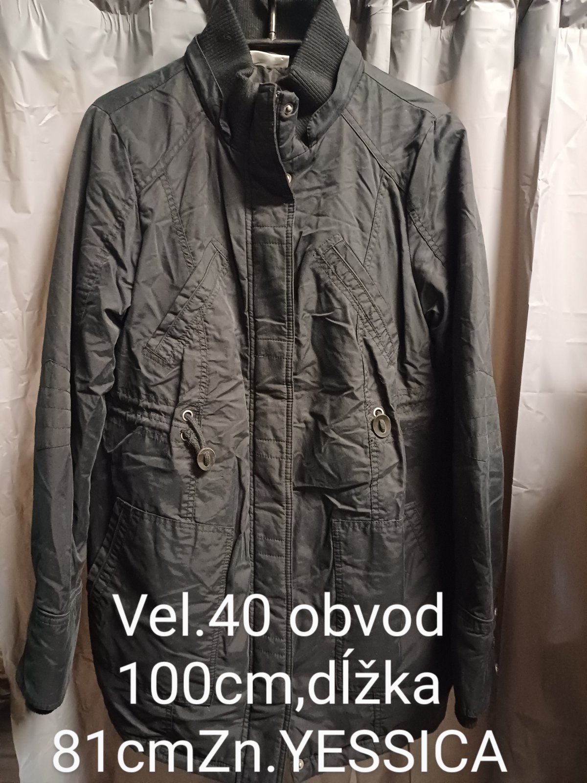 Zimny prešívany teplý kabát.resp. bunda, dĺžka od ramena 95cm, dĺžka od pazuchy 65 CM, obvod od pazuchy po pazuchy 55, dĺžka spodok bundy 60, materiál polyester