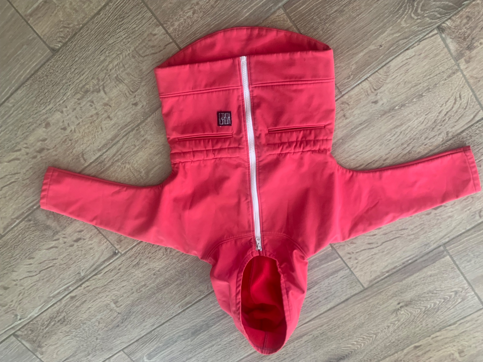 Miery: celková dĺžka zadný - predĺžený diel (perfektne kryje kríže pri podrepe) - 50 cm, predný diel 45 cm. Šírka 36 cm, rukáv od kapuce 40 cm, VD rukáva 29 cm.