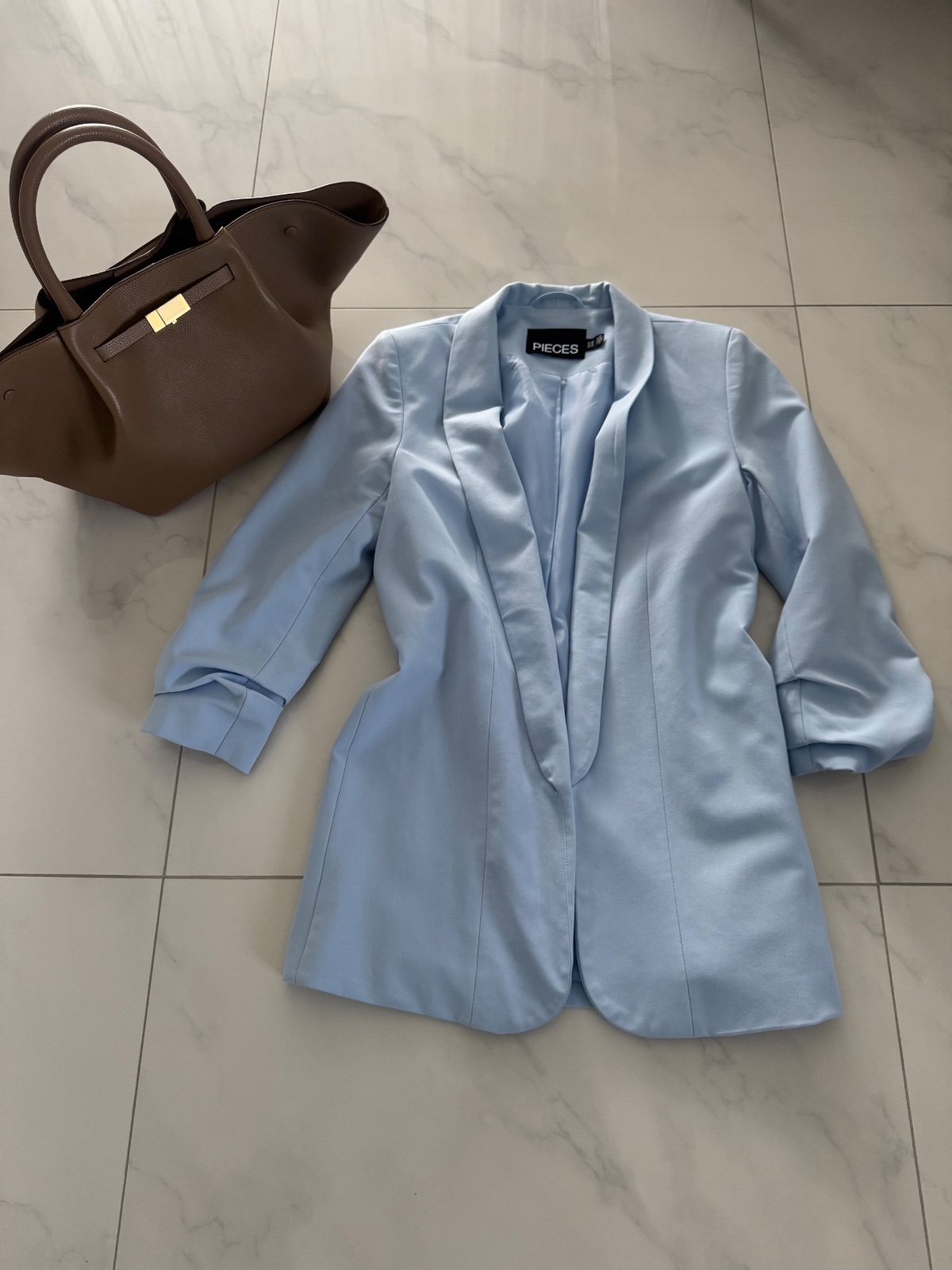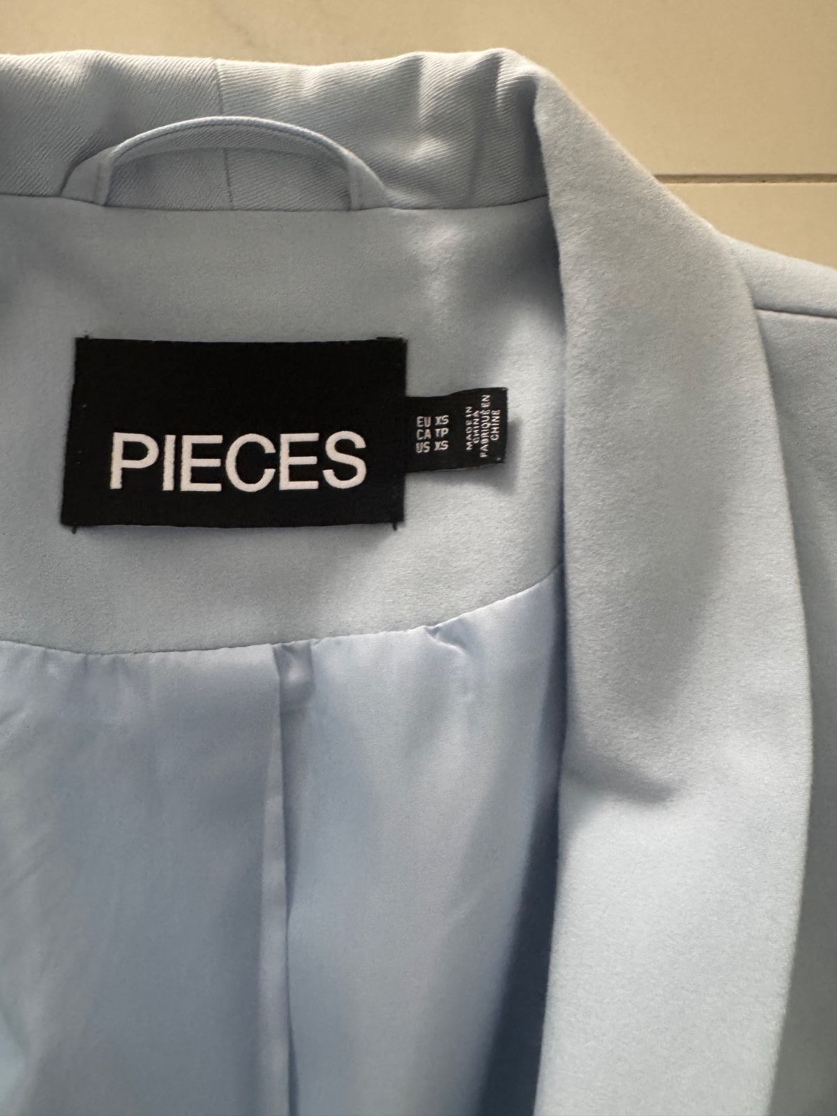 Predám bledo-modré sako s 3/4 rukávom vo veľkosti XS značky PIECES. Nosené, bez poškodenia.