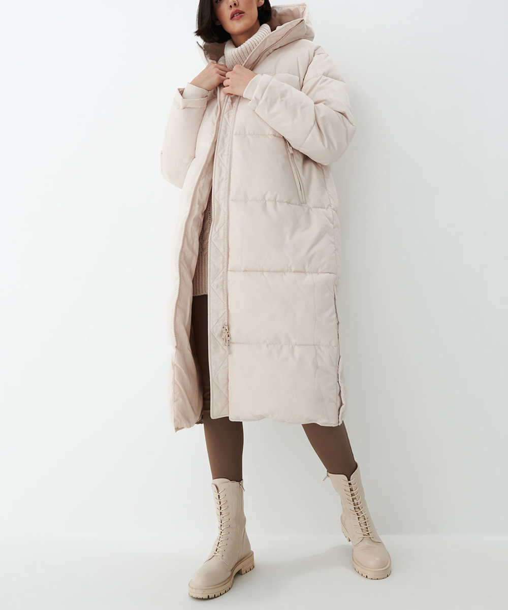teplá a lahučká, zimná bunda, kremovej farby ,