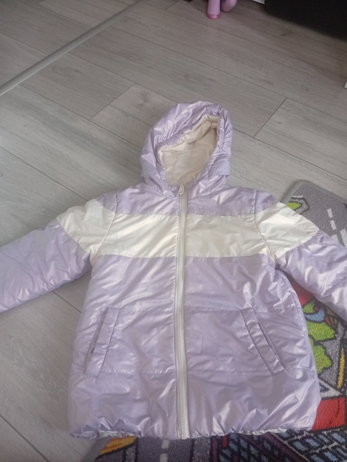 Obojstranná bunda cocodrilo Fialovo biela pekný stav ve.116/122 8e