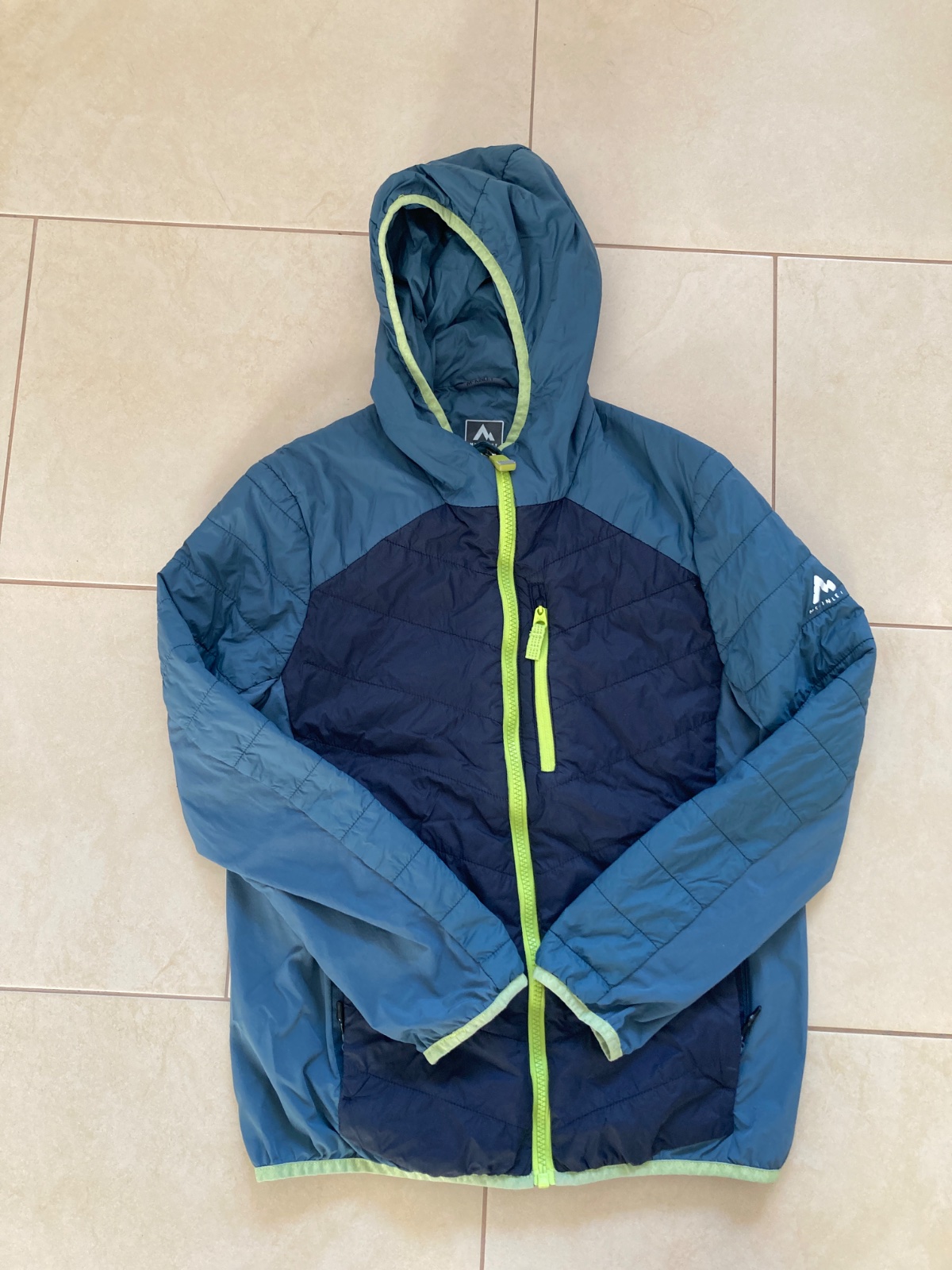 Teplejsia prechodna, s odopinatelnou kapucnou. Mame pretlak prechodnych v tejto velkosti, nevyuzije syn. Je bez poskodeni, do skoly aj na prilezitosti. Velmi pekna, prijemny material. Bez post.
