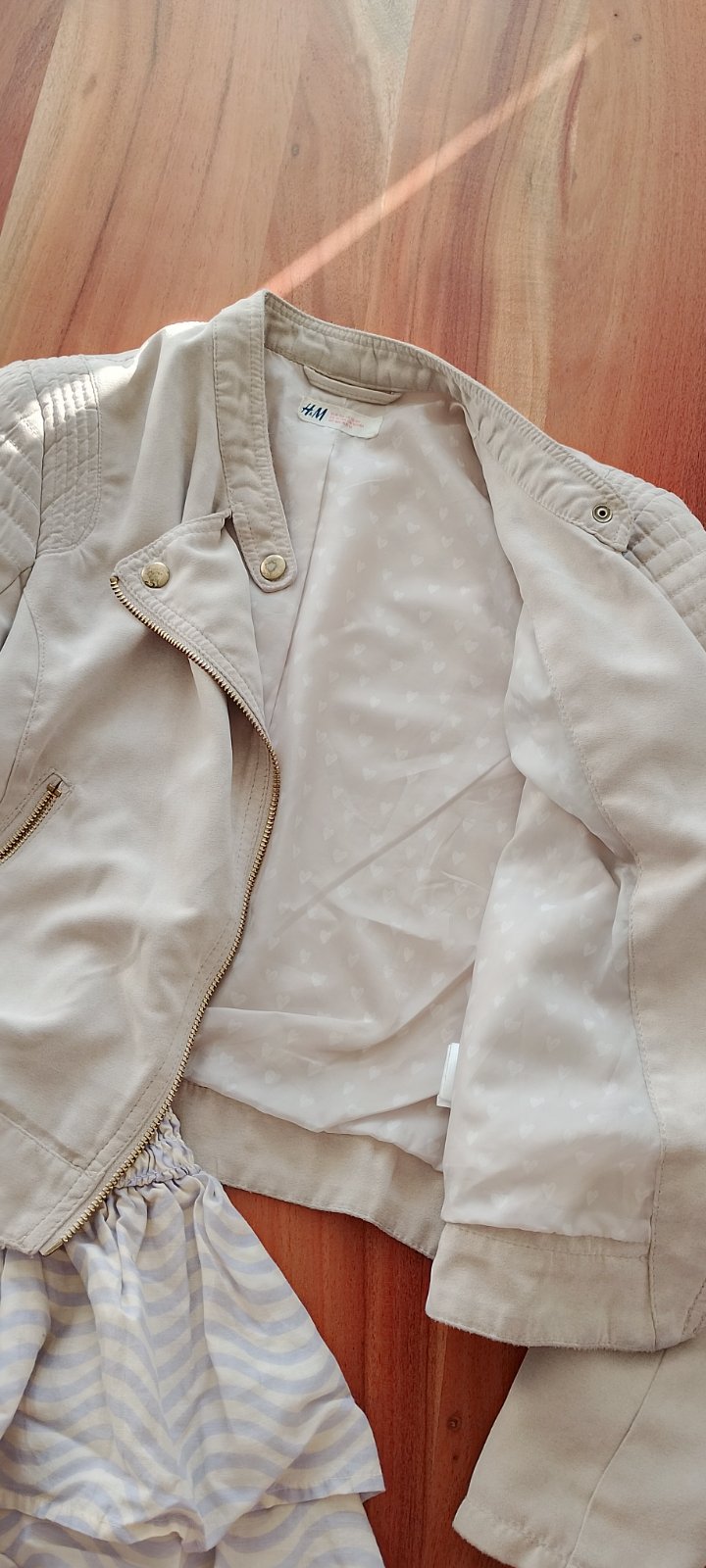 Pekná, bola nosená no je v super stave. Plecia 41 CM. Hrudník 46 CM. Pás 40cm. Rukáv 59cm. Dĺžka 50cm.