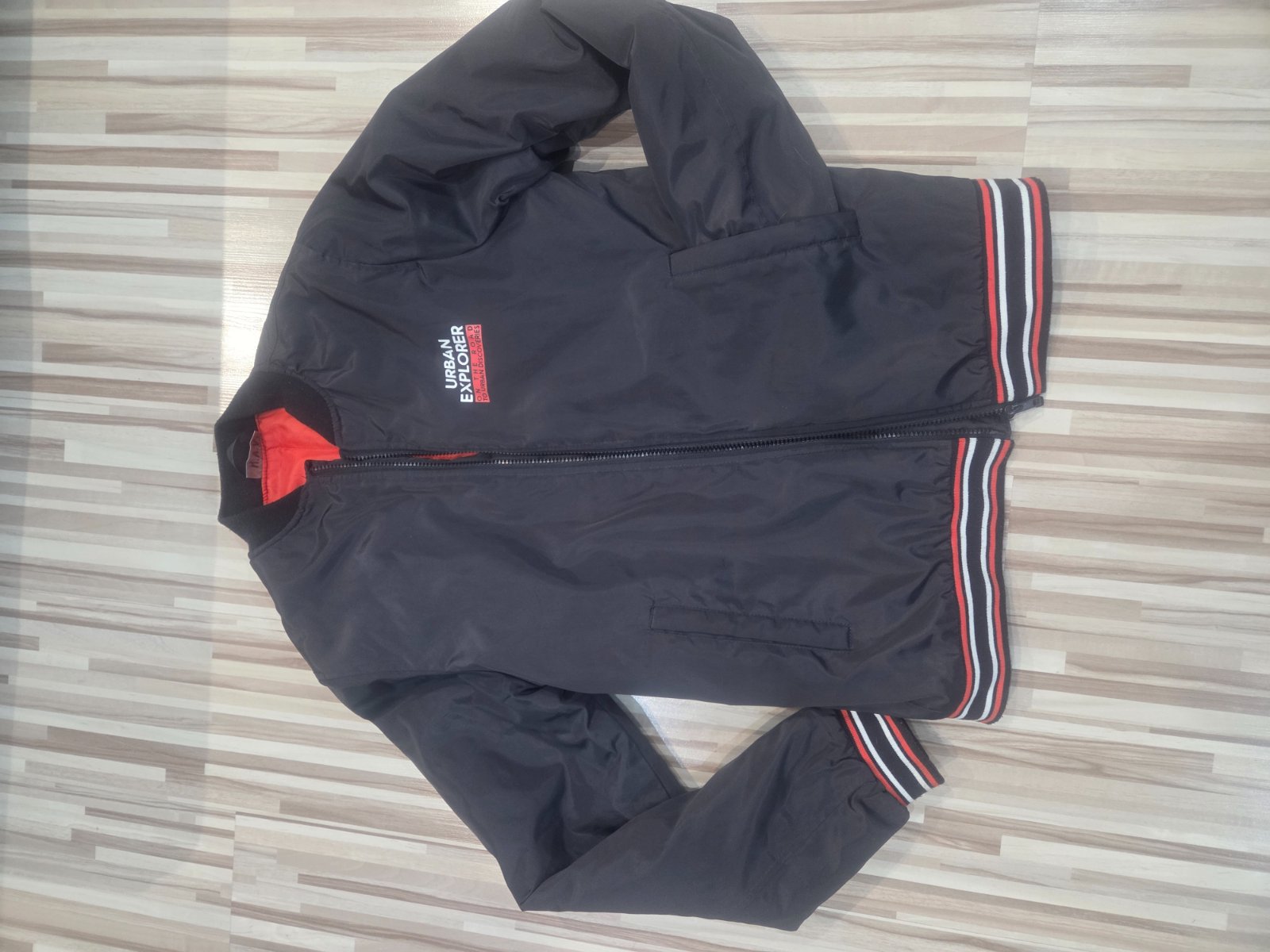 Predám vetrovku na prechodné obdobie. Vedľa pravého vrecka cca. 4cm zatrhnutie vrchnej látky, kt. treba zašiť. Foto na detailnej fotke. Iné poškodenia nemá. Stav a presné rozmery: viď. detailné f...