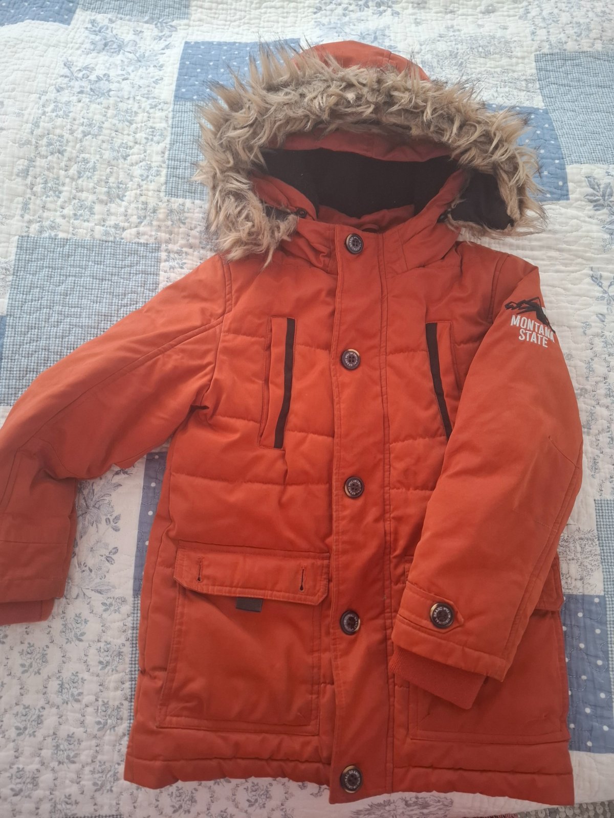 🍀kvalitná zimná bunda/parka zn. C&A v cca farbe tehlovej 🍀veľ. 122 - kľudne nositeľná aj dlhšie 🍀š- 43cm; d.od krku- 59cm; r- 44,7/52,5cm+ manžeta cca 1,1cm 🍀super teplá- polovične podšitá baranček...
