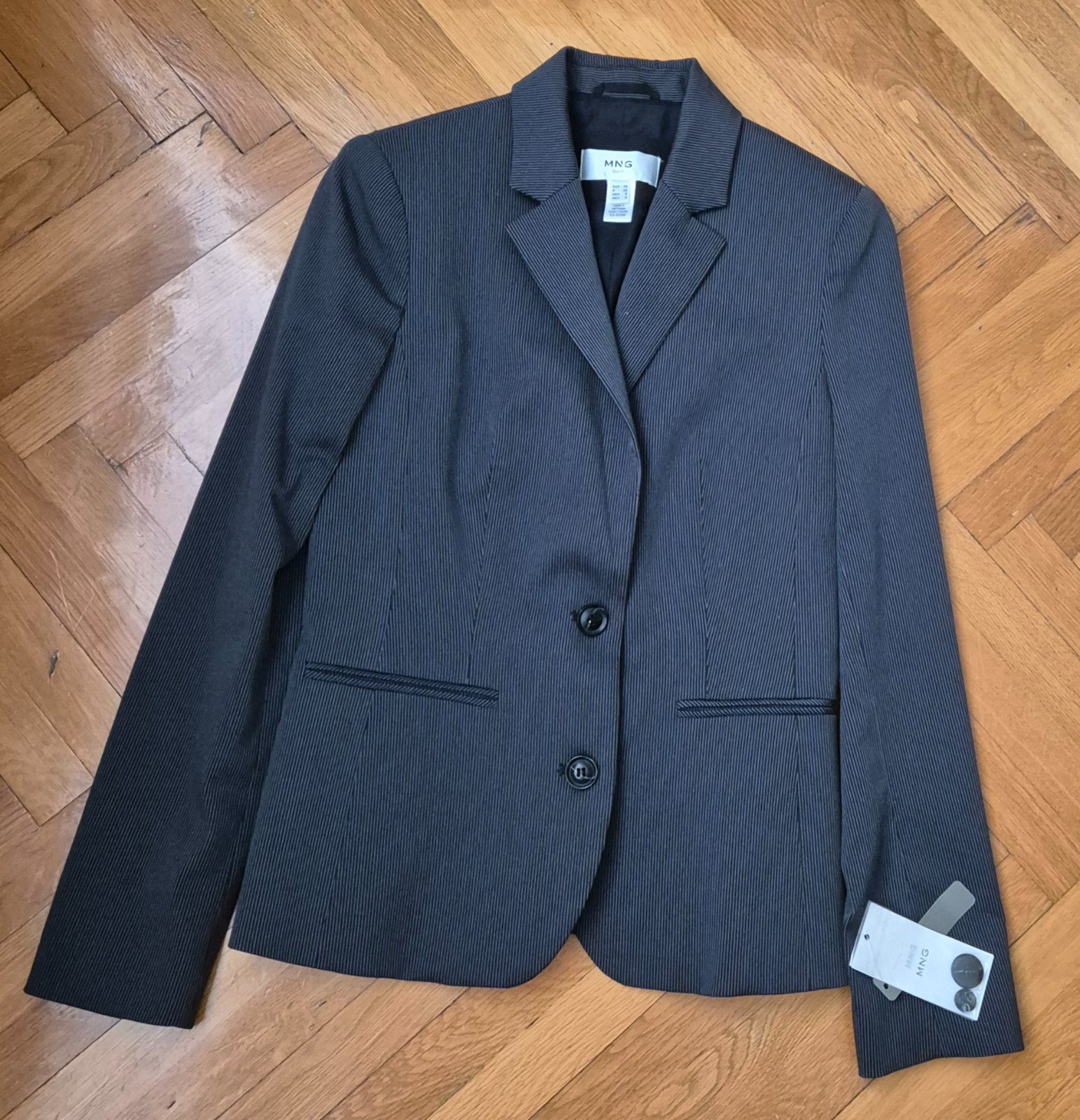 Predám nenosené sako Mango klasického strihu s jemným bielym prúžkom. Veľkosť 38.