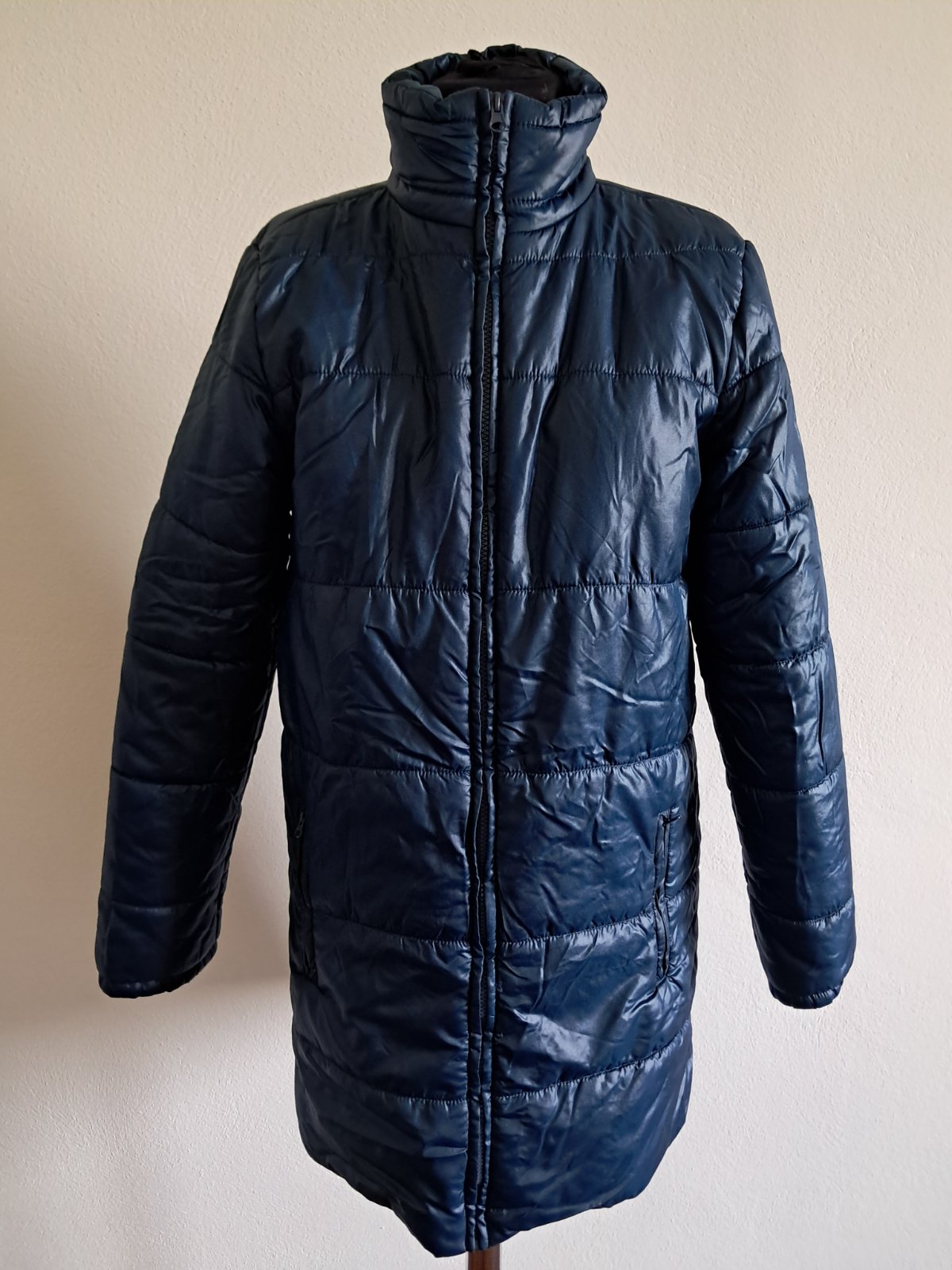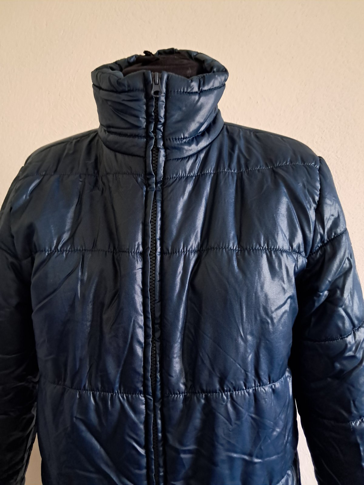b.young zimna bunda petrolejovomodrej farby, velkost M, rozmery: d. 84cm, s. 2x 49cm, dl. rukava 63cm