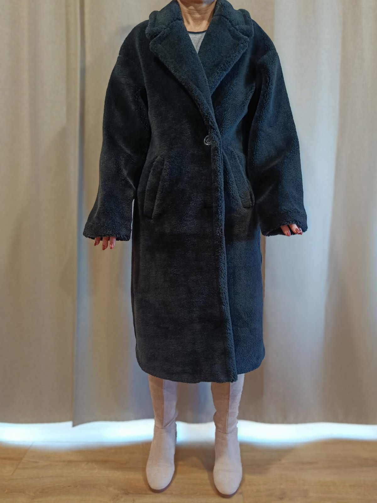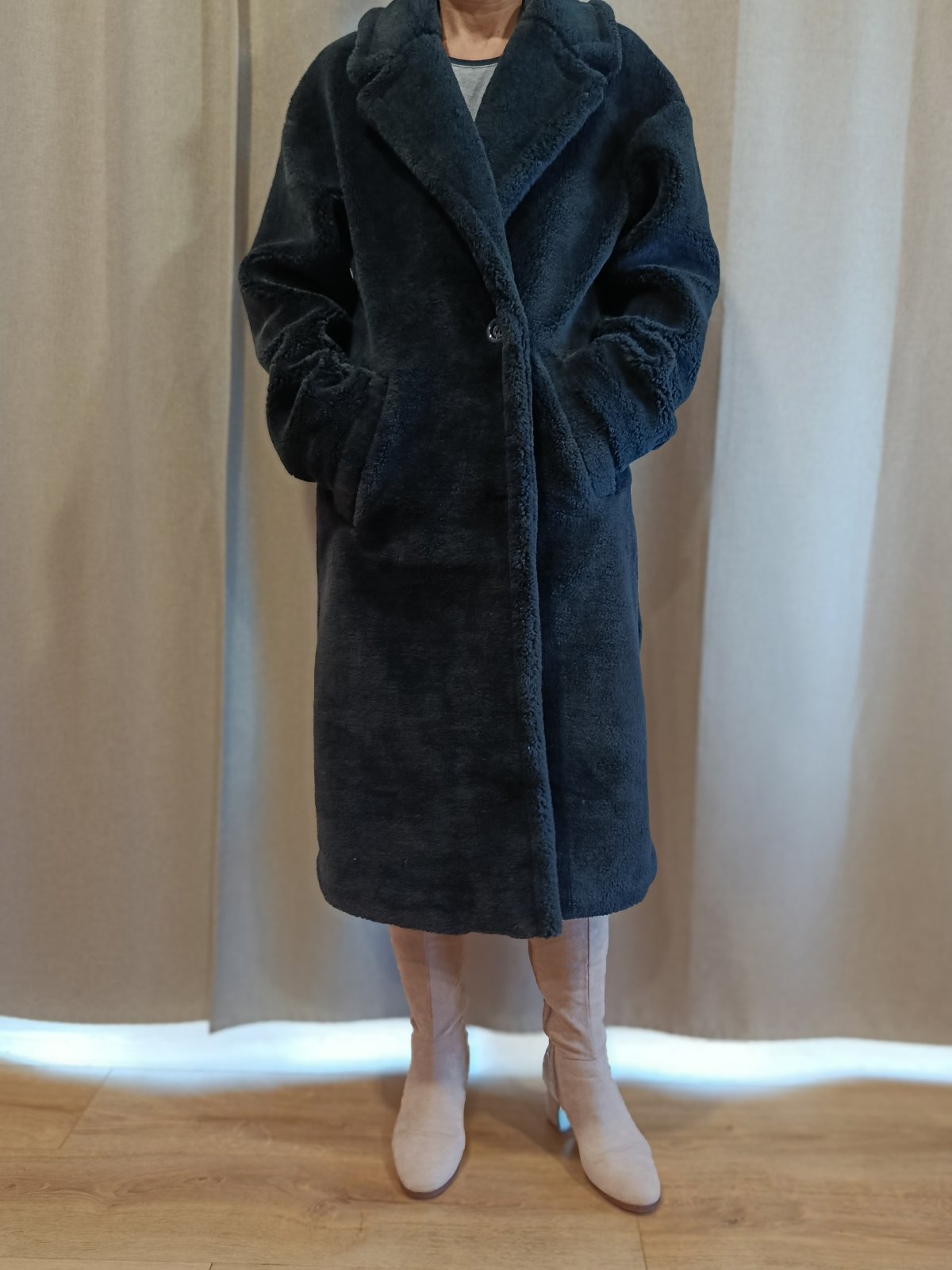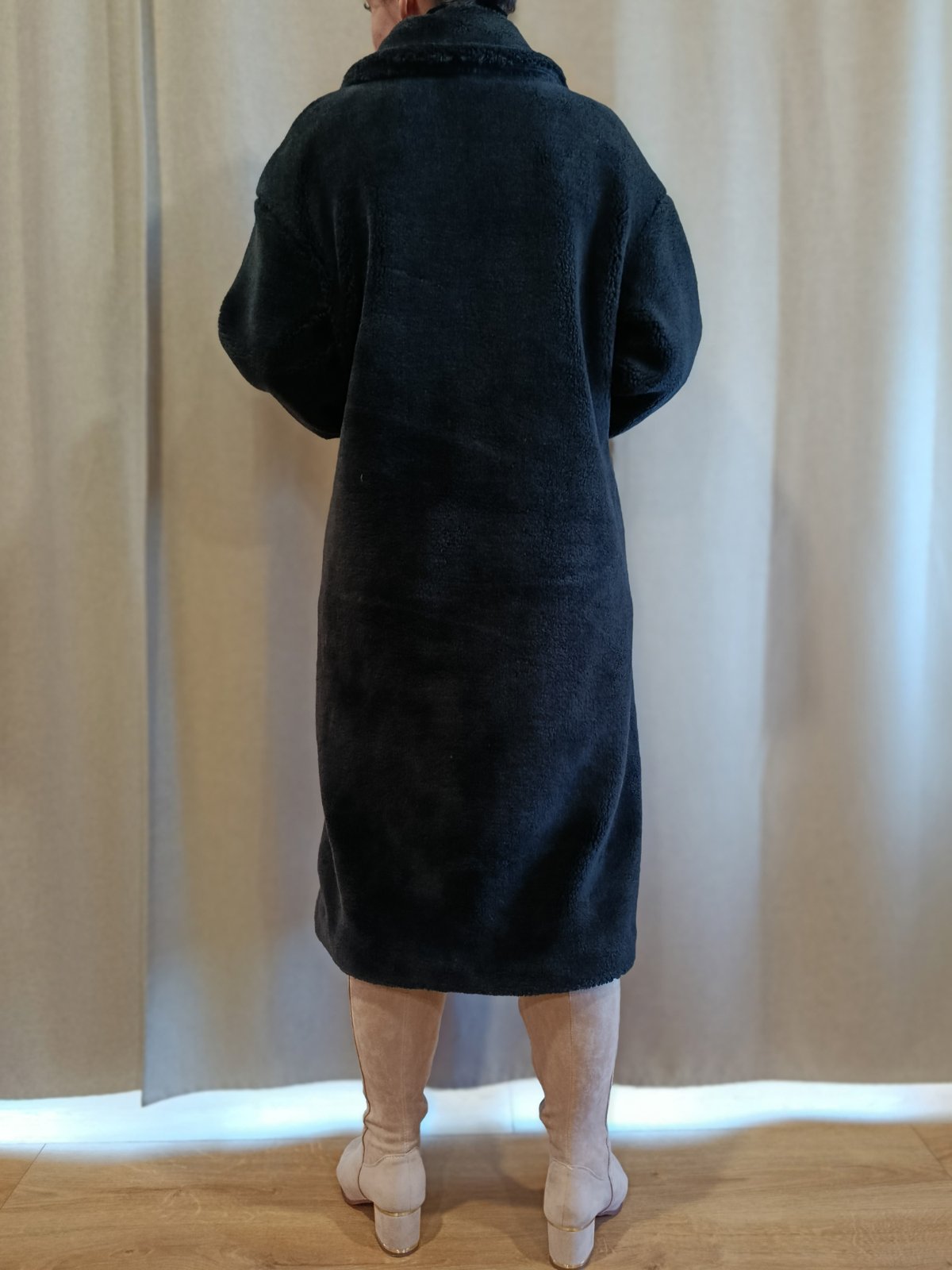 Kožuch-TEDDY čierny dlhý, M-L, ako NOVÝ