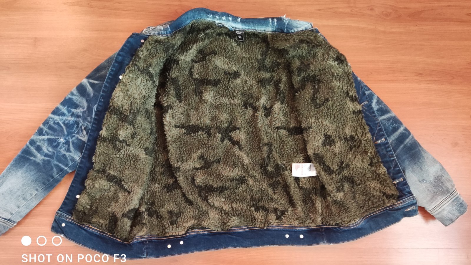 Prechodná bunda, zateplená telo plyšová kožušina, rukávy látka , veľkosť XL no kupovana na veľkosť L,na ľavom rukáve nevyprateľna hnedá čiarka,fotka.