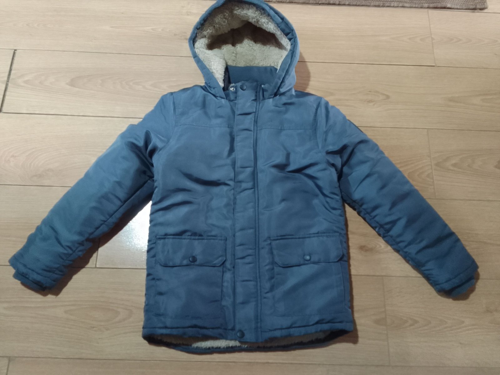 Nosený ale v bezchybnom stave. Na kabáte písaná veľkosť 164, ale podľa mňa menší.