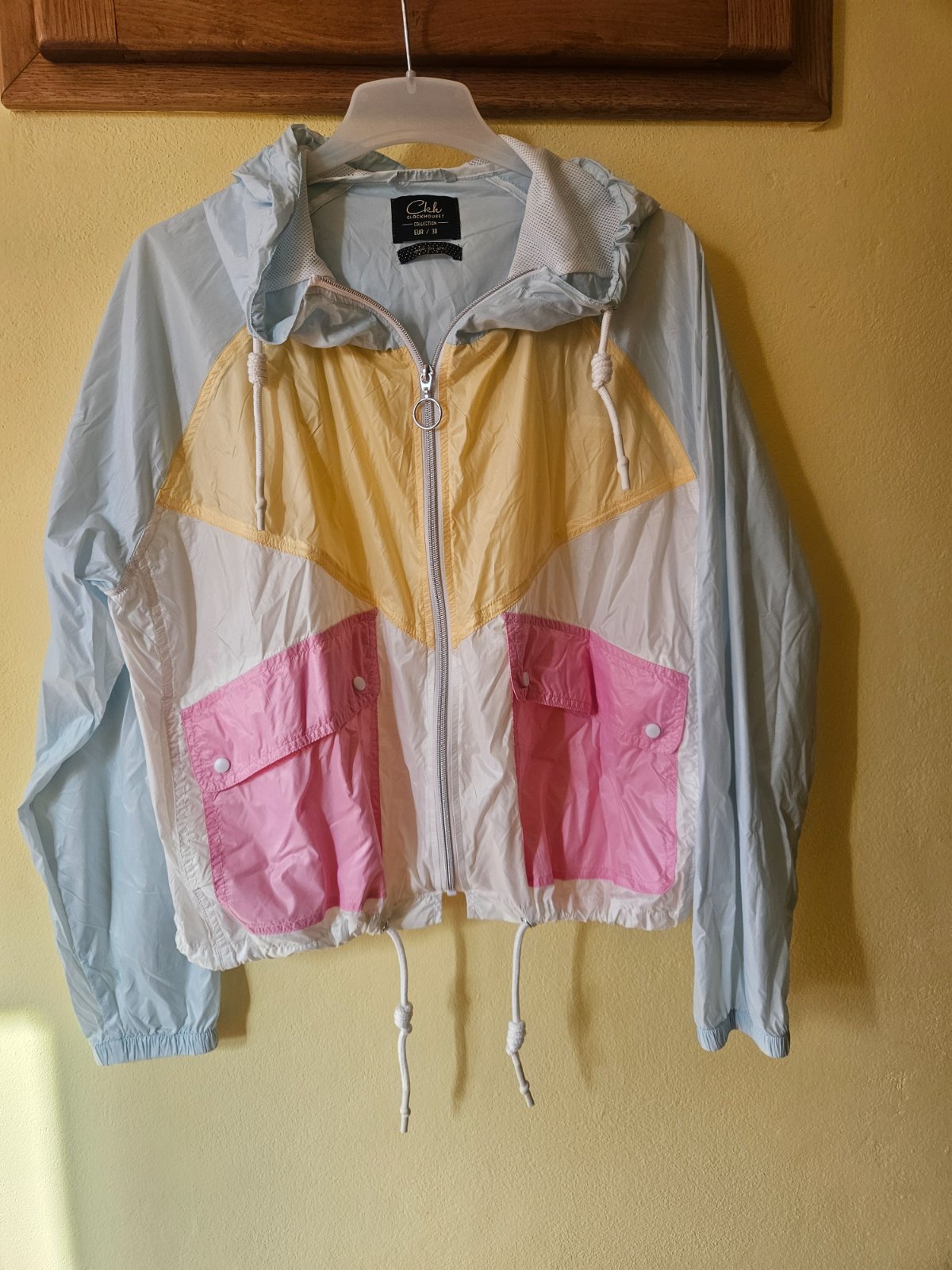Super stav,ako nová,min.nosená,pôv.cena 29,90E,ľahučká do batohu,na výlety,zaberá minimum miesta,dl.od pleca 54 vm,š.63 cm,rukáv od krku74 cm