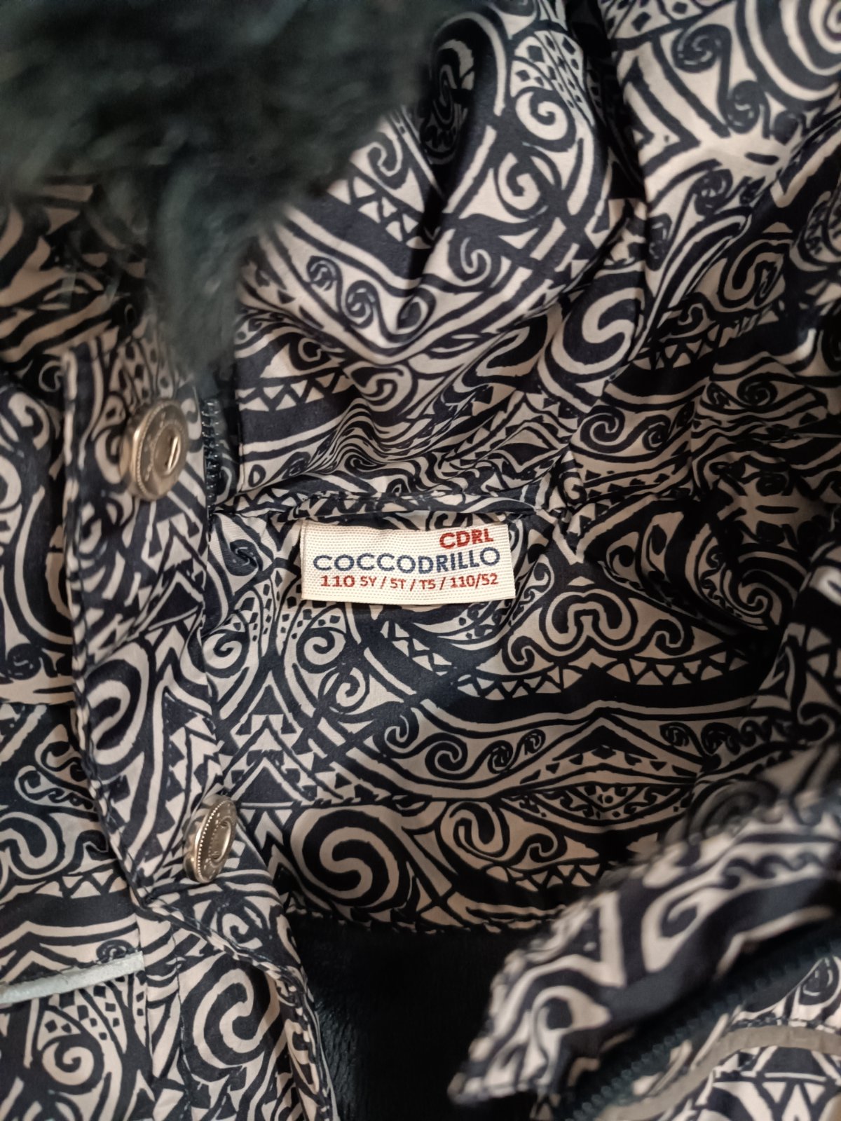 Kvalitná teplá, zimná bunda značky COCCODRILLO. Nosena. Posúvame. Známky používania sú zmolky na patentoch a tá metalická farba miestami vysuchana. Vnútri otepelena. Pôvodne 45€.