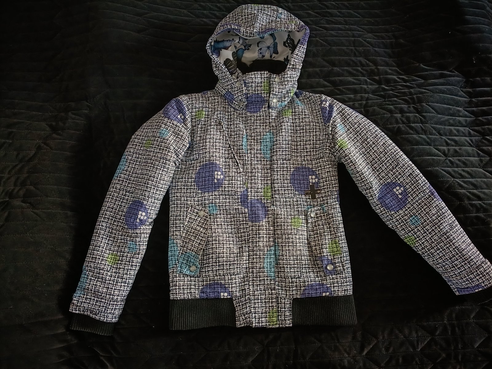 Nepremokavá zimná bunda vhodná aj na lyžovanie alebo snowboardovanie. Kapucňa je odnímateľná a nastaviteľná. Noseny, ale zachovalý stav. Má pár nedokonalosti, napr. jeden suchý zips sa trochu odlepuje. Plne funkčná. Cena 15€+poštovné.