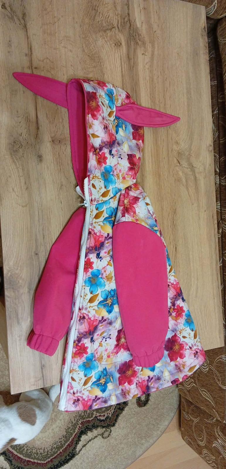 Jednofarebne alebo vzorové. Kabátik strihaný v páse alebo s rovnými prednými dielmi a nariaseným zadným. Vrecká a mašle v cene kabátika, uši zajko za príplatok +1€ (Menšie macko alebo mačičkove uš...