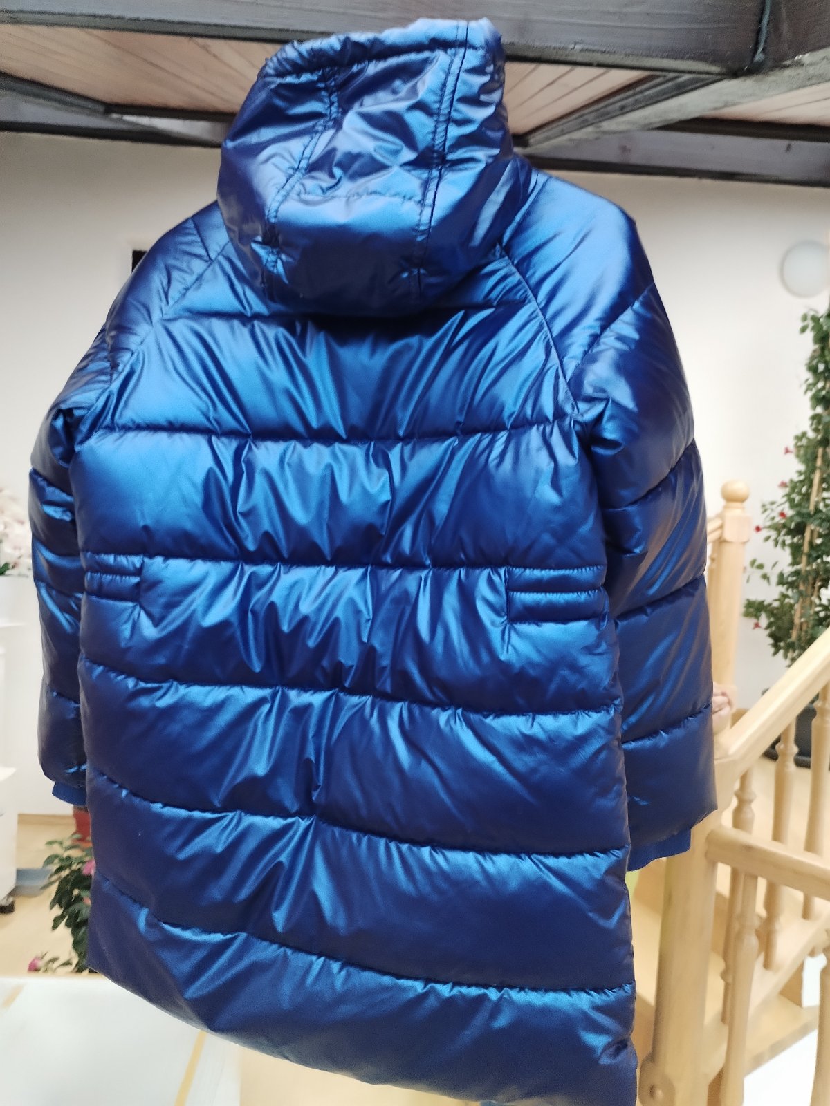 veľmi pekna, malo nosena, hruba bunda,pekný stav, pri foteni na chrbte dole som nasla menší slaby fliačik, vsetko pofotene