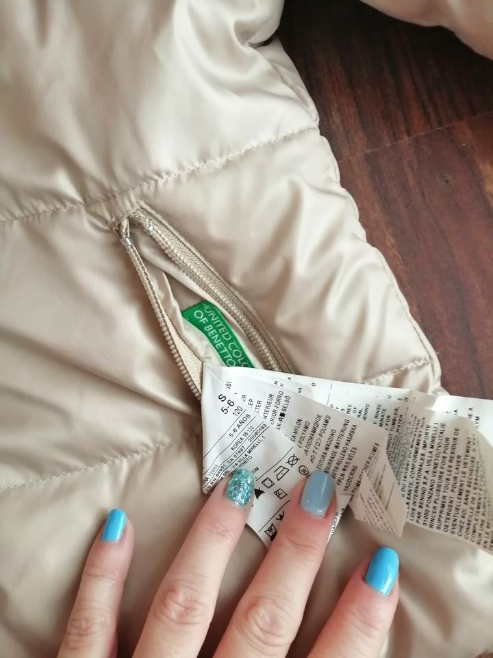 Prekrásna obojstranná zimná bunda. Jedna strana zlata/krémová a druha biela. Značka Beneton. Písané 5-6rokov. Kapucňa sa dá odzipsovat. Tak isto aj rukávy a je to vesta obojstranná. Bunda je bez poškodenia a dá sa nosiť aj na 4-5rokov. Cena je 14eur.Na dobierku neposielam