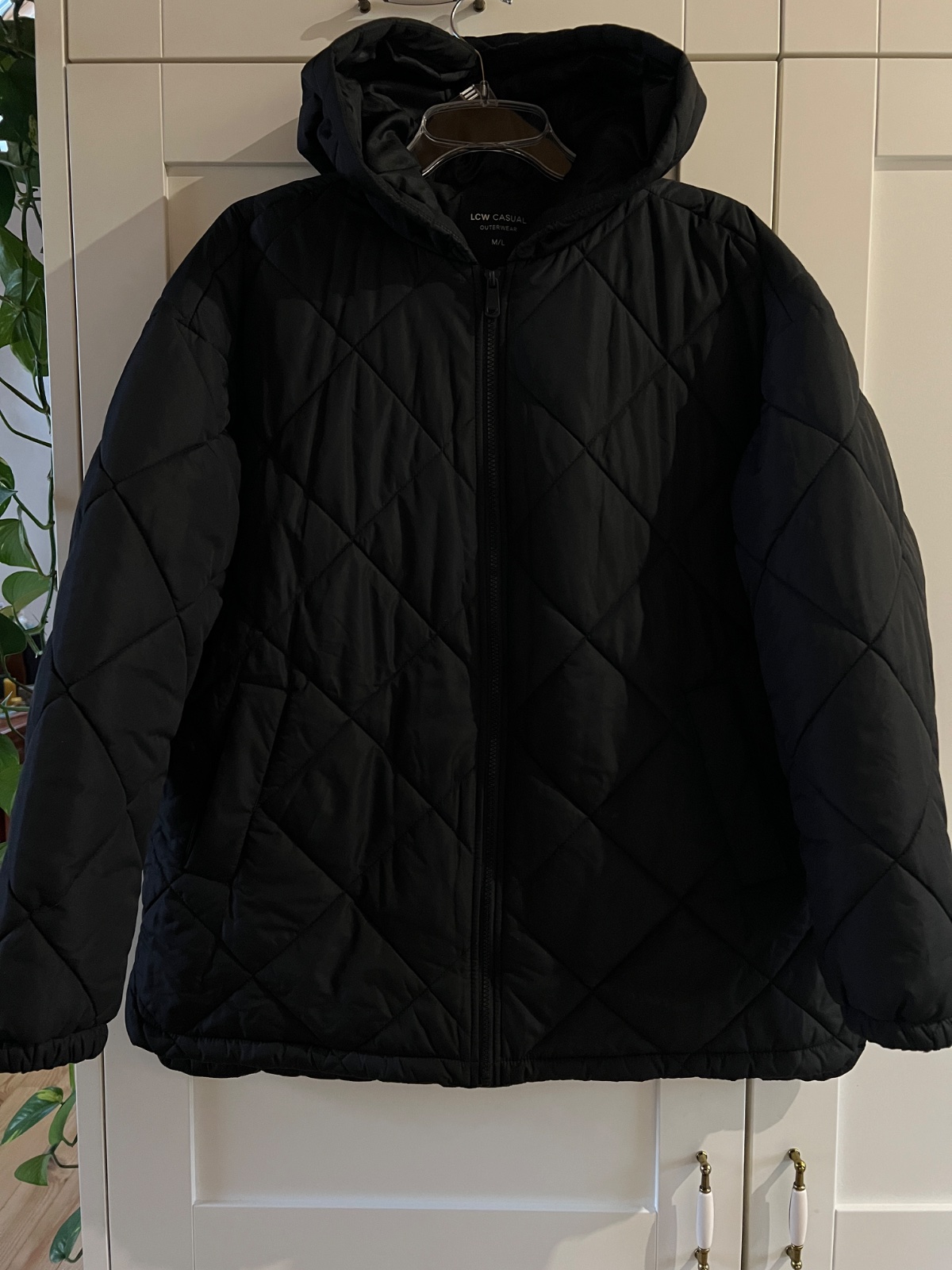 voľnejší strih, dostatočne široká, sadne skôr na L, kapucna napevno