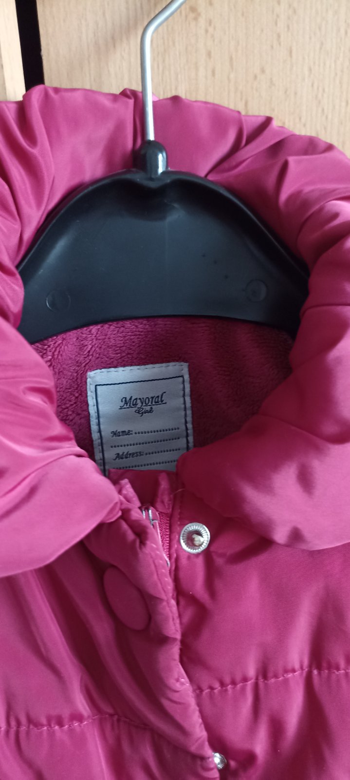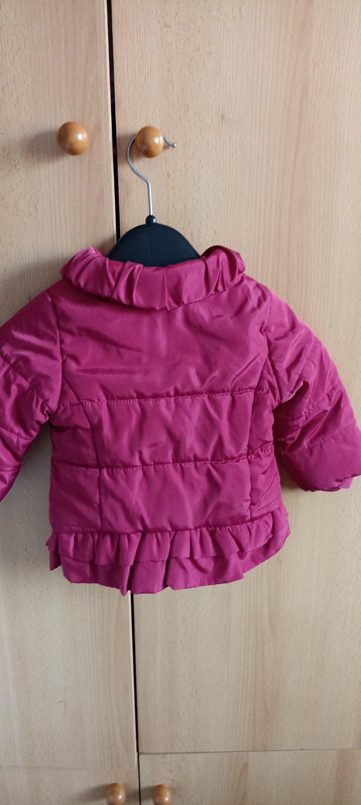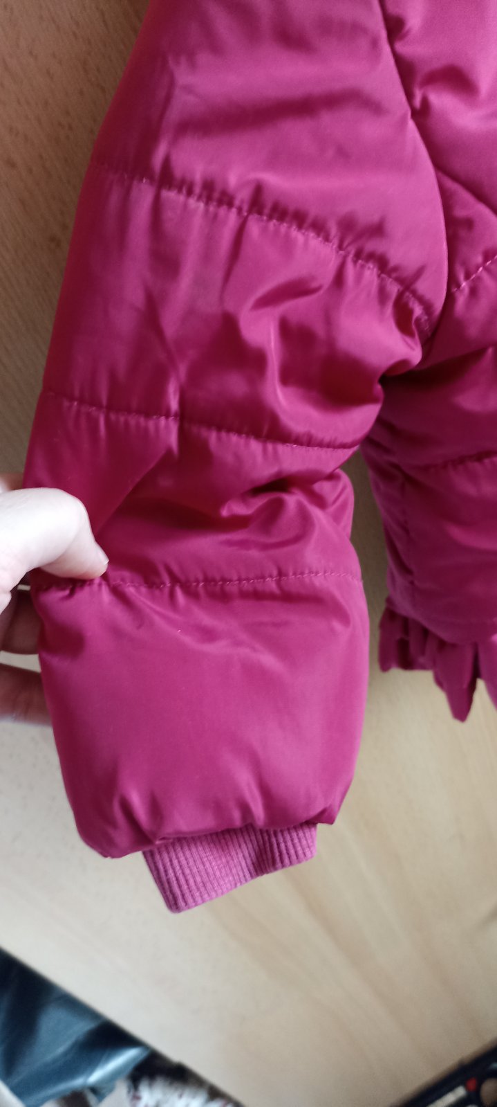Veľmi pekne do detailov vypracovaná bunda. Krásna sýta farba je skôr cyklámenova ako tmavo ružová. Nemá žiadne poškodenia, akurát na bežcoch zipsov vreciek je trošičku ošúchana farba, vidieť na foto. Inak krásna a na dieťatku naozaj úžasne ukáže.