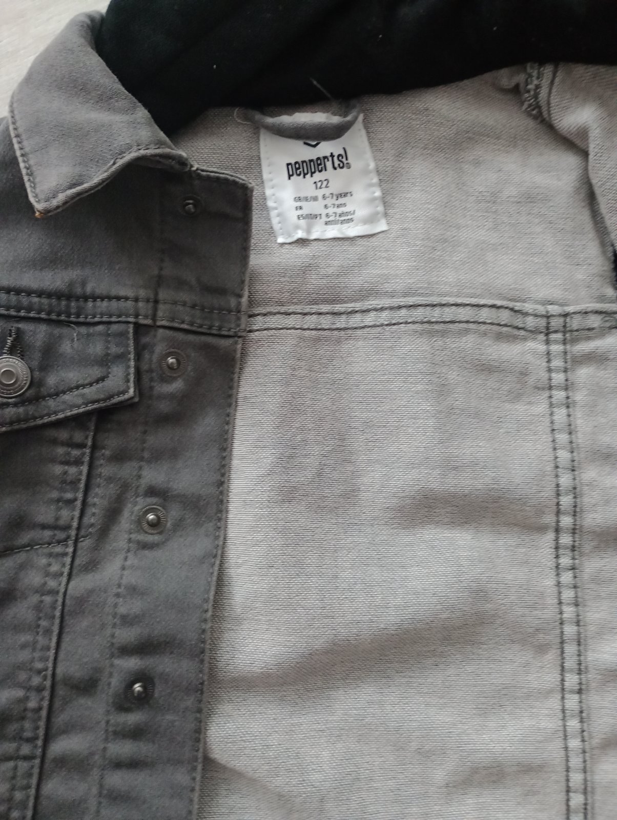 V TOP stave,pár krát oblečená.Velkost píšu 122 (6-7 rokov) ale je menšia.Pretonudavam.ja 116.Riflova,len rukavy a kapucňa tepláková. Rozmery viď foto.