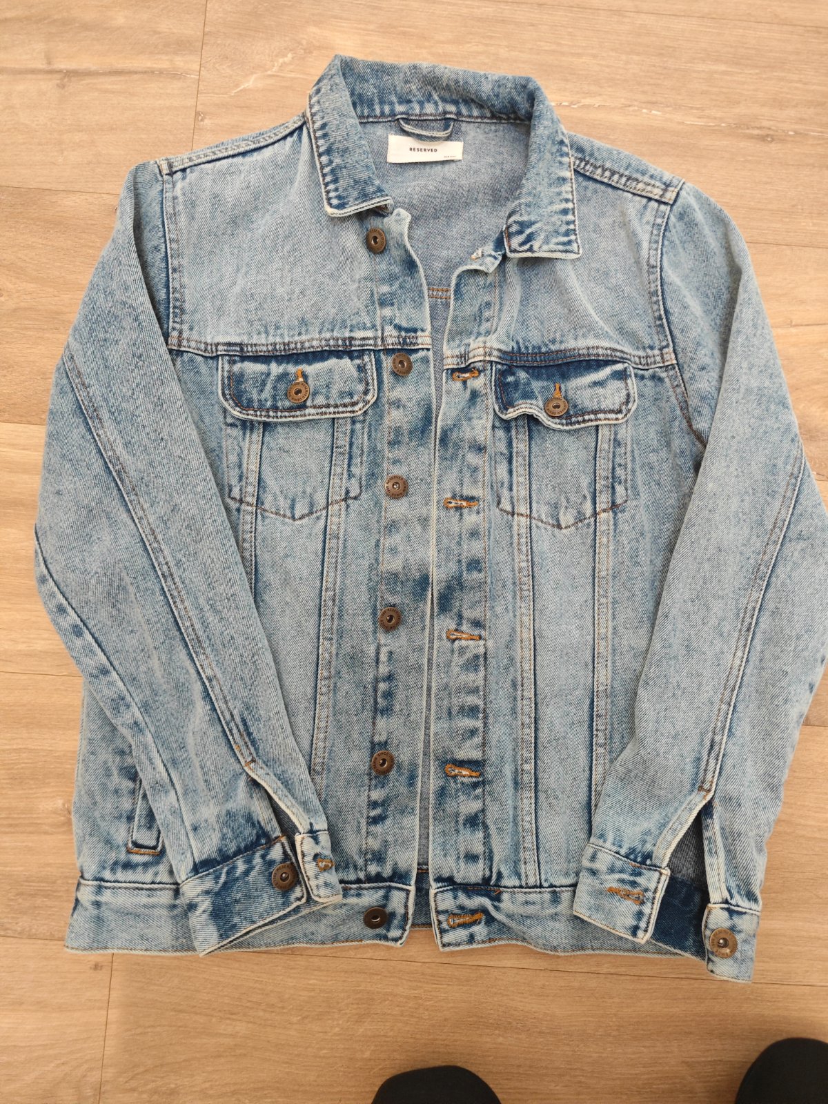 Predám riflovu bundu oblečenu 2x. Vo výbornom stave farba svetlomodrá značka Reserved, veľkosť 164.
