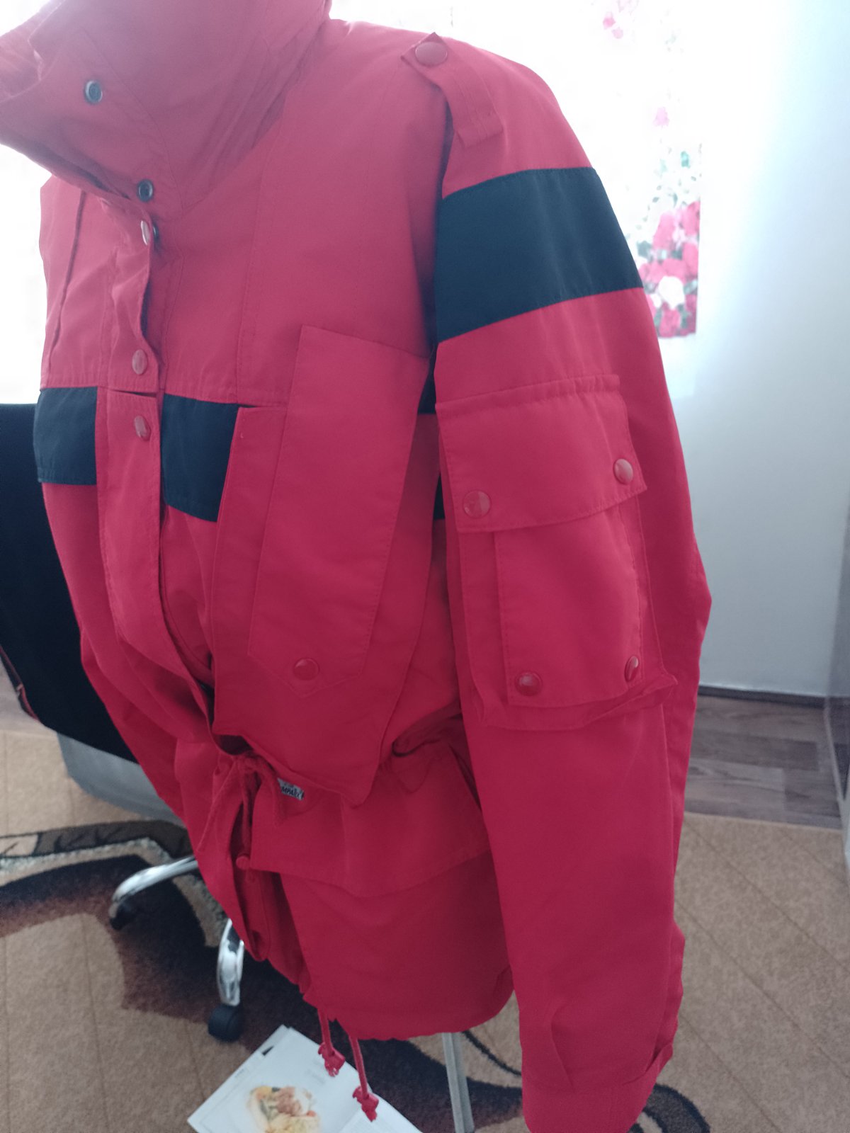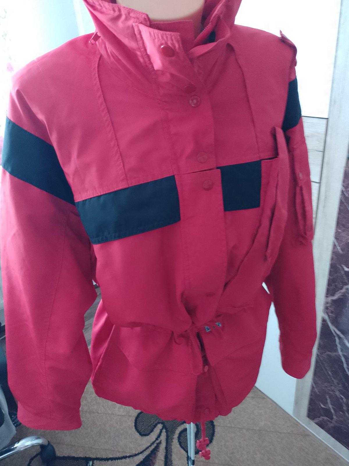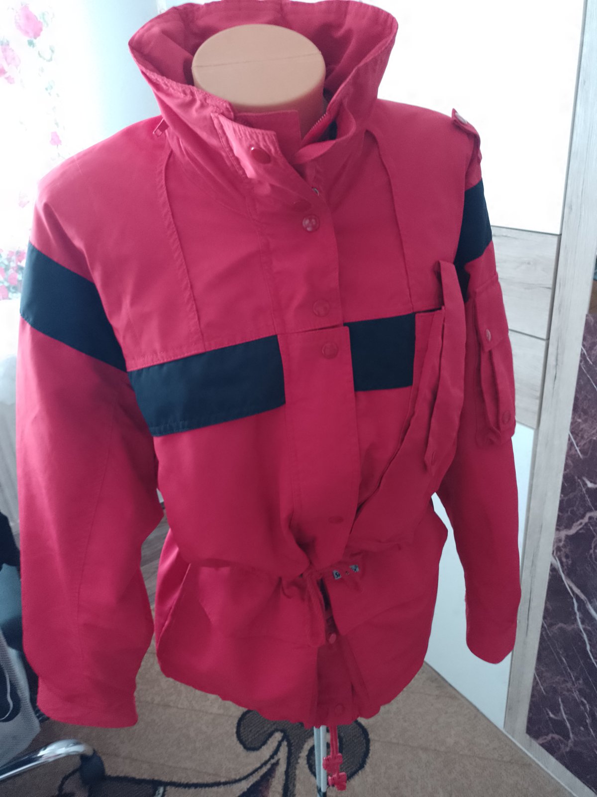 Predám túto prechodnú vetrovku bez chýb. Na kapucnu vzadu má tenkú poskladajú kapucnu schovanú v golieri