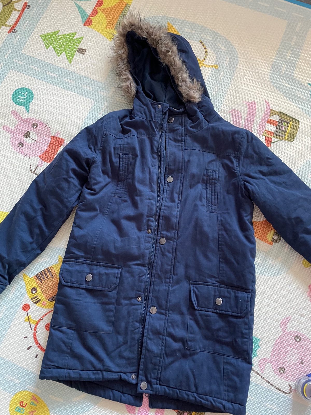 Oblecena iba raz!!! Velkost 152!!! Absolutne bezchybny stav no od novoty tam chybal jeden “cvok” druhy z hora,ale vobec tam nechyba…inak 100% stav, vela vreciek,kozusinka sa da dat dolu..idealna na prechodne obdobie,popripade miernejsiu zimu….sirka a dlzka pre info odfotene!!