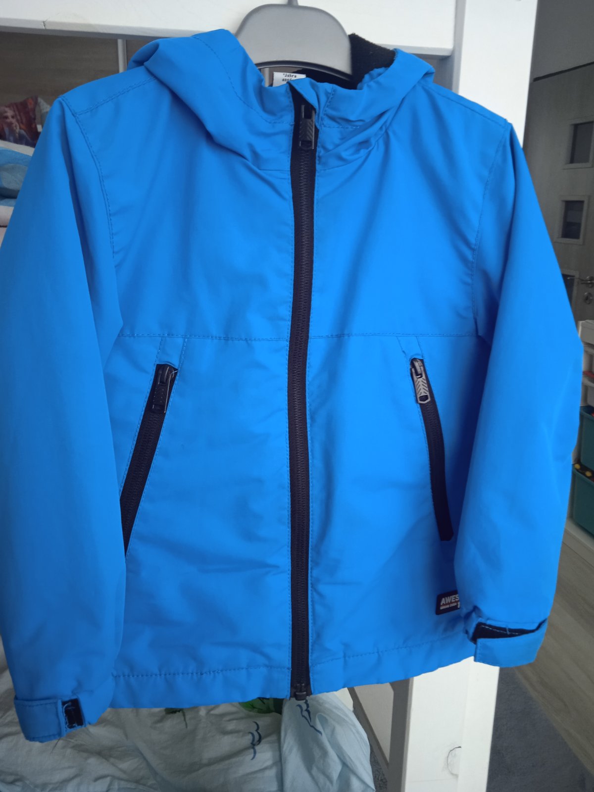 Prechodná bunda, vhodná aj do dážďa a vetra, podšitá flisom. Bez závad