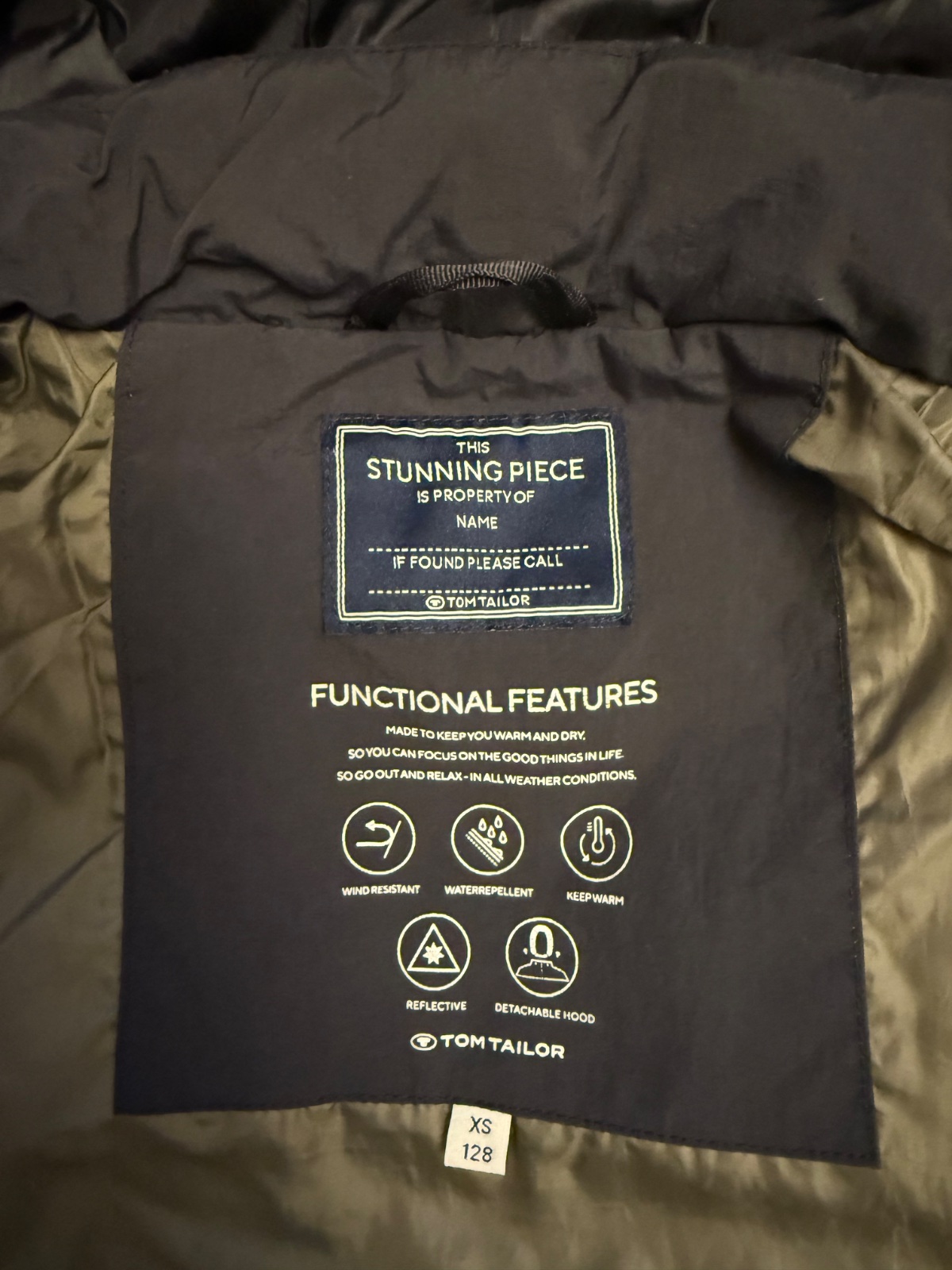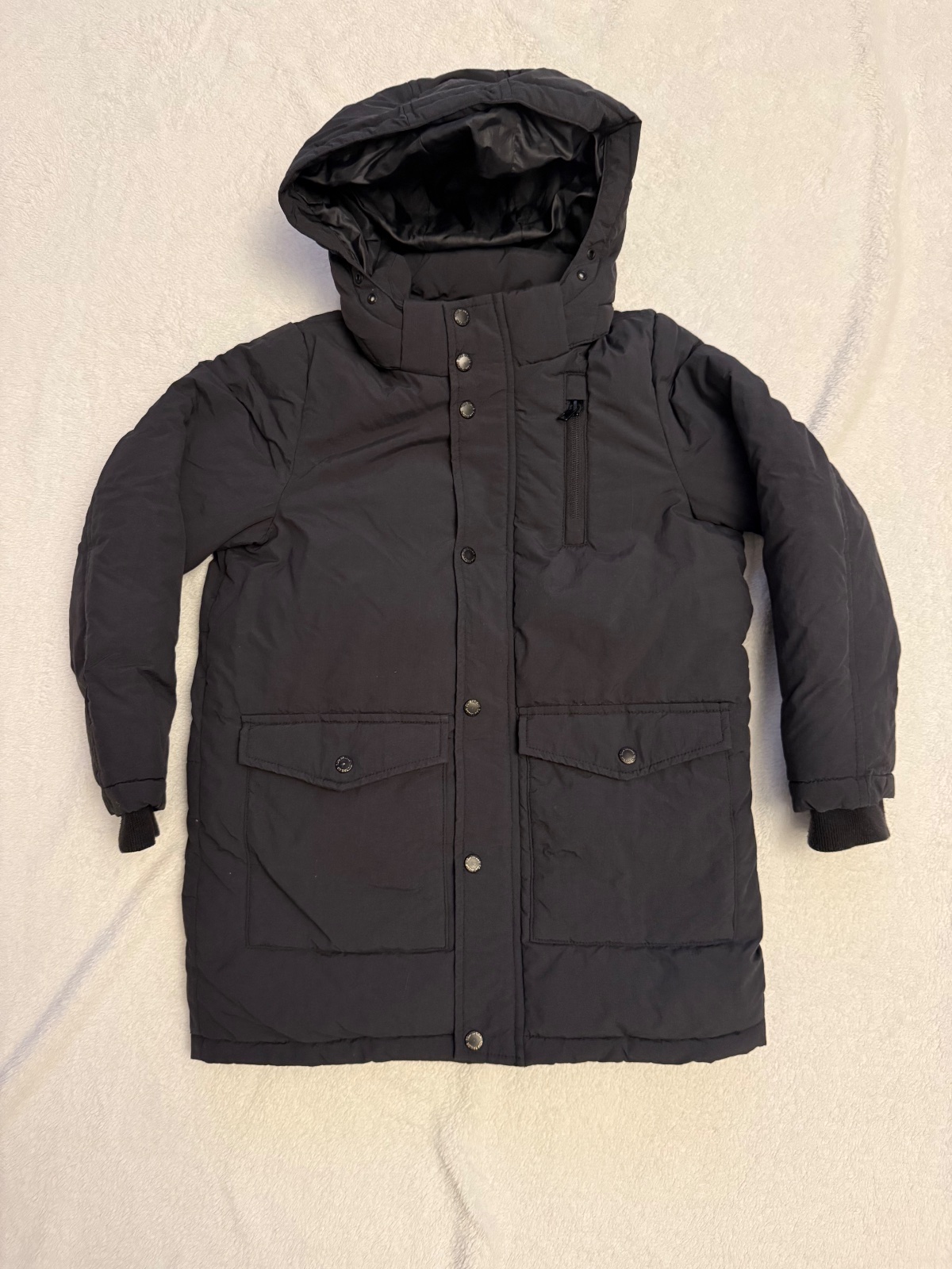 Dobrý nosený stav, pekná tmavohnedá farba, skôr na miernejšiu zimu, odopínateľná kapucňa, váha 500g netto. Dĺžka od pleca 51, rukáv od krku 55, šírka cez hrudník 45 cm.