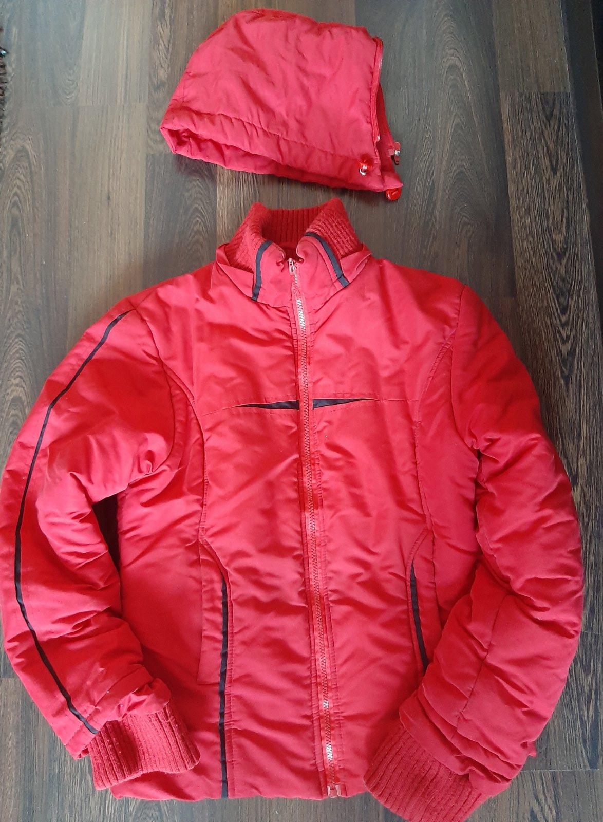 pár krát vzata, veľ písaná 175/96A sedí na M, bohatá kožušina dá sa odopnut, šírka pod pazuchami v kľude 49cm povolí, dĺžka 78cm, vzadu trochu dlhšia, pekná červená farba, #