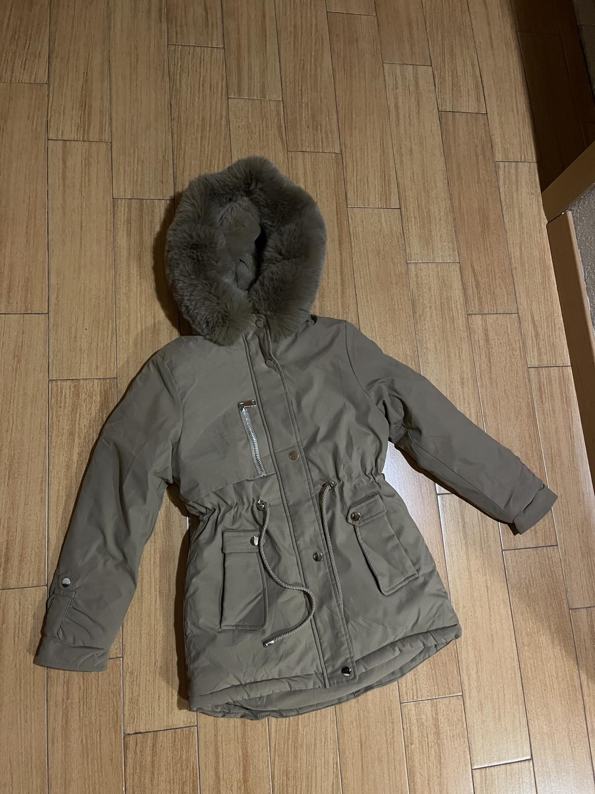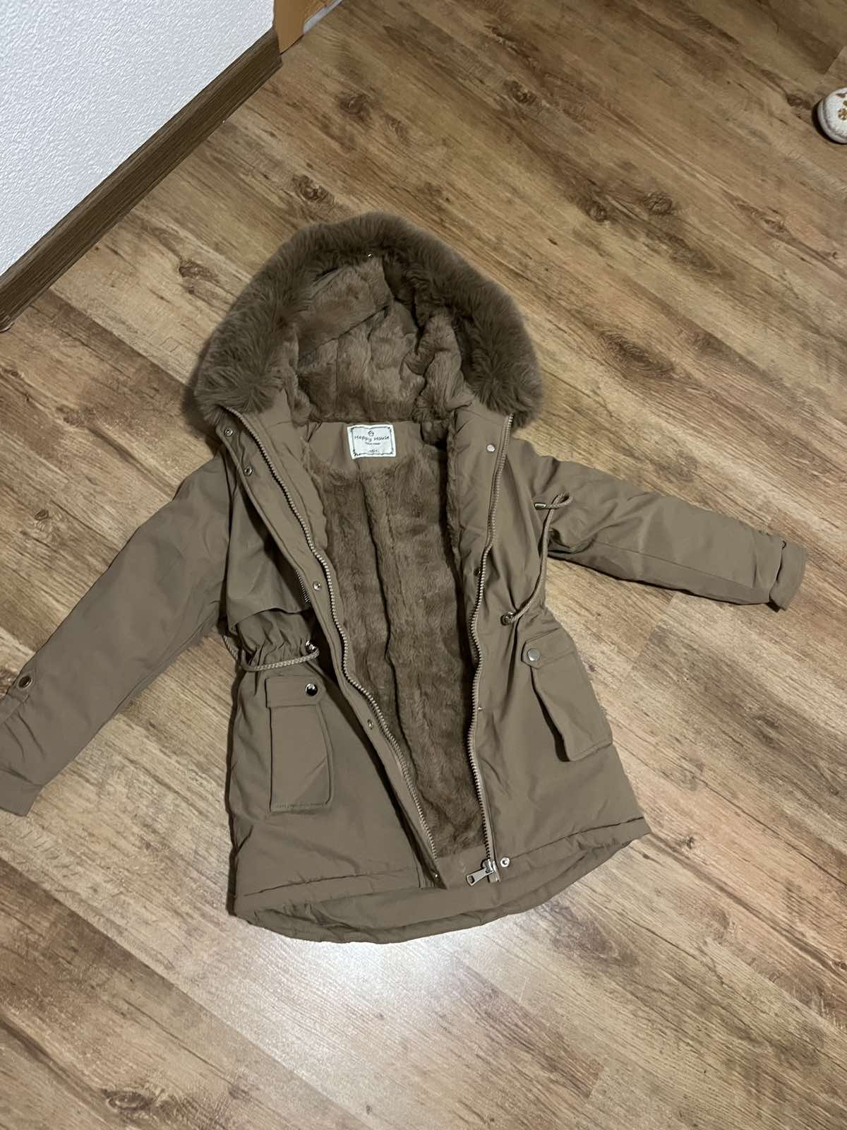 Vo veľmi dobrom stave, bez poškodení Dĺžka: 64cm, rukáv:53cm, kapucňa odnímateľná. Svetlohnedá