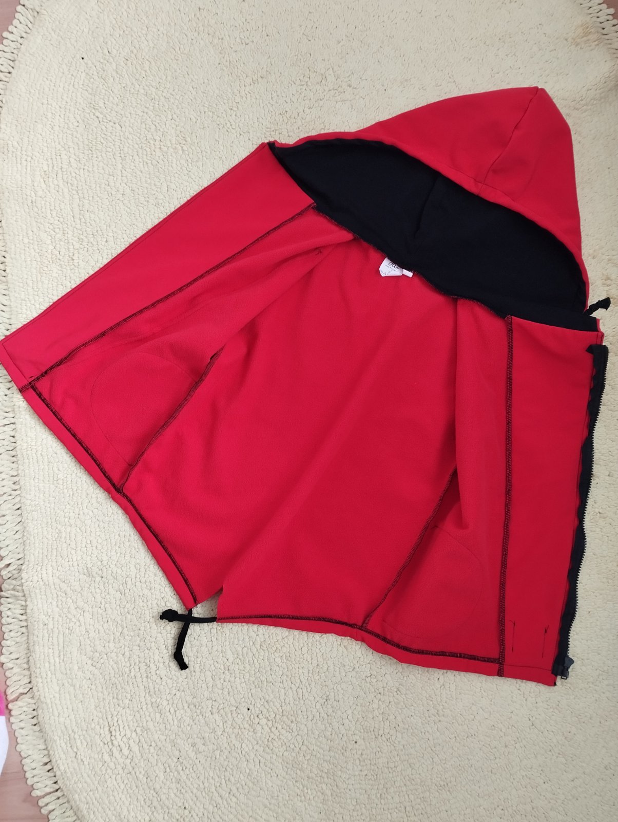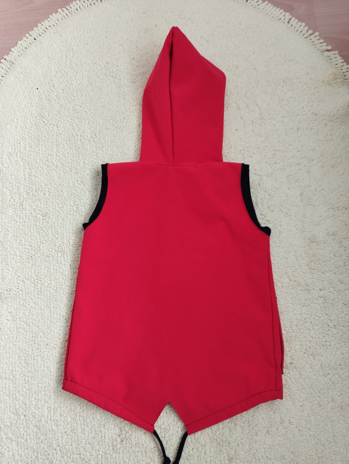 Zateplená vesta, sytej červenej farby , zapínanie na zips, aj vrecká, bočné aplikácie. Kupovana v riadnom obchode, žiadna Čína.