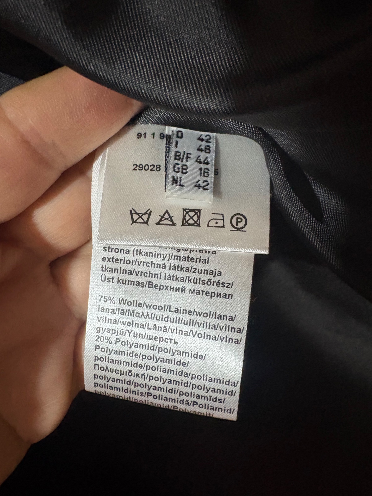 Super stav sedí na 42..kvaitný 75% vlna.Tmavoantracitová farba.PC 120€.